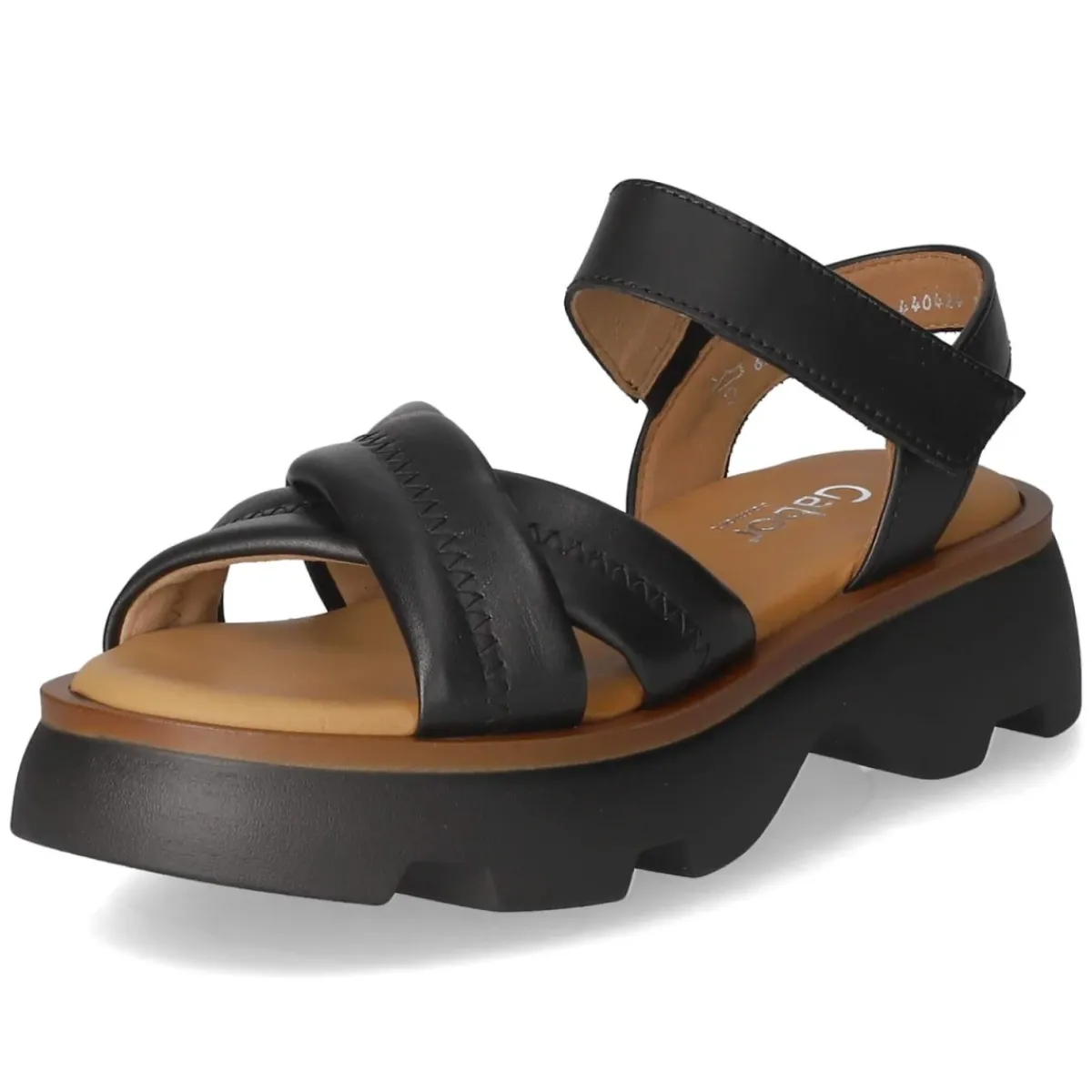 Diese Gabor Sandalen in klassischem Schwarz verbinden sommerliche Leichtigkeit mit verlässlichem Komfort. Das Obermaterial aus hochwertigem Glattleder legt sich weich an den Fuß, während atmungsaktives Echtleder und die lederne Decksohle ein angenehmes Klima unterstützen. Ein gepolstertes Fußbett entlastet bei jedem Schritt, die rutschhemmende Plateausohle sorgt mit 5 cm Absatzhöhe für stabilen Halt und eine sanfte Portion Höhe. Der praktische Klettverschluss erlaubt ein schnelles Anpassen, der Schnitt fällt normal aus und macht das Modell zum unkomplizierten Begleiter für Alltag und Anlass. Modetipp: Zur Culotte aus Leinen oder zum fließenden Midikleid entsteht ein moderner City-Look; in Kombination mit dezentem Goldschmuck wirkt das Schwarz besonders edel.