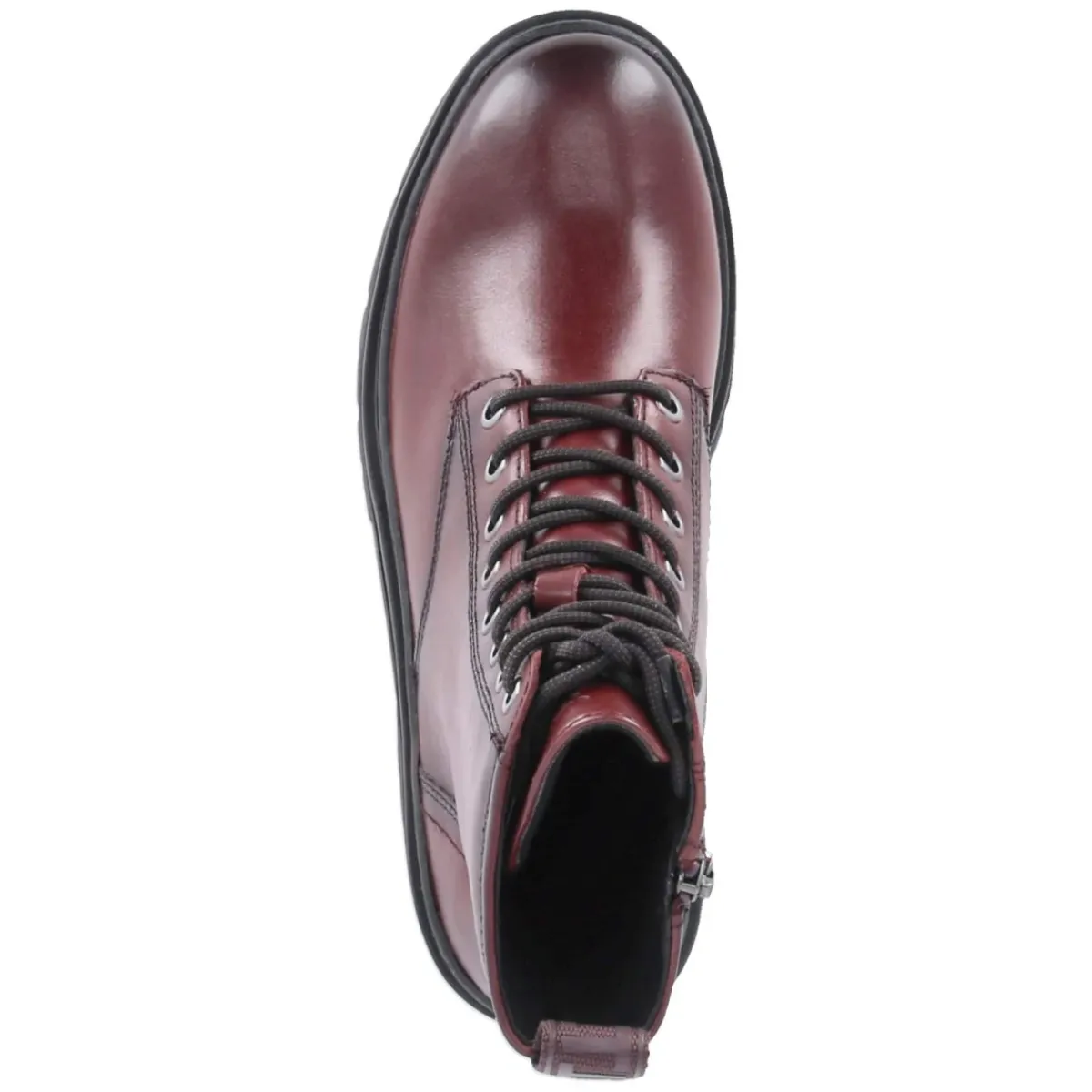 Dieser Tamaris Schnürboot vereint lässige Optik mit durchdachten Komfortdetails. Das robuste Obermaterial aus Leder und Synthetik zeigt sich in sattem Dunkelrot und wird von einer runden Schuhspitze sowie einem verstärkten Fersenbereich ergänzt. Der 4 cm hohe Blockabsatz sorgt für einen stabilen Auftritt, während das relaxt leichte Design den Fuß auch an langen Tagen entlastet. Innen verwöhnt eine textile Decksohle mit bester Memory-Foam-Fußbettung, die sich individuell anpasst. Schnürsenkel und seitlicher Reißverschluss ermöglichen schnellen Einstieg, die Anziehlasche unterstützt zusätzlich. Für sicheren Halt sorgt die flexible, rutschfeste Laufsohle. Der schmalere Schnitt schmiegt sich elegant an den Fuß und macht den Boot zum smarten Allrounder für Erwachsene. Modetipp: Zur Straight-Leg-Jeans und Wollmantel kombinieren, dazu ein Schal in Burgunder für ein harmonisches Ton-in-Ton-Styling.