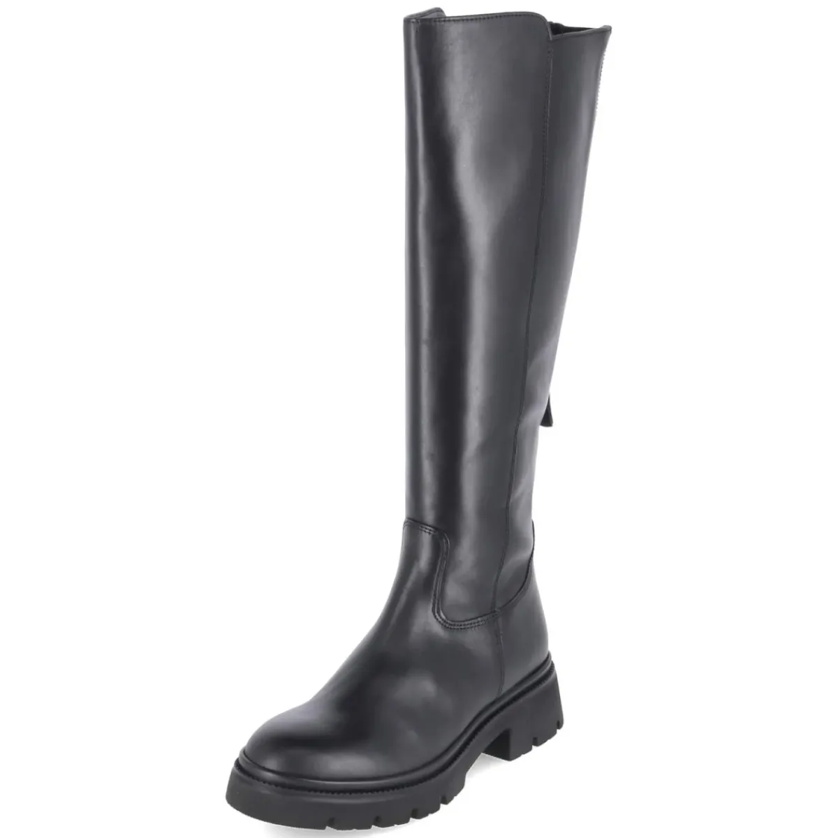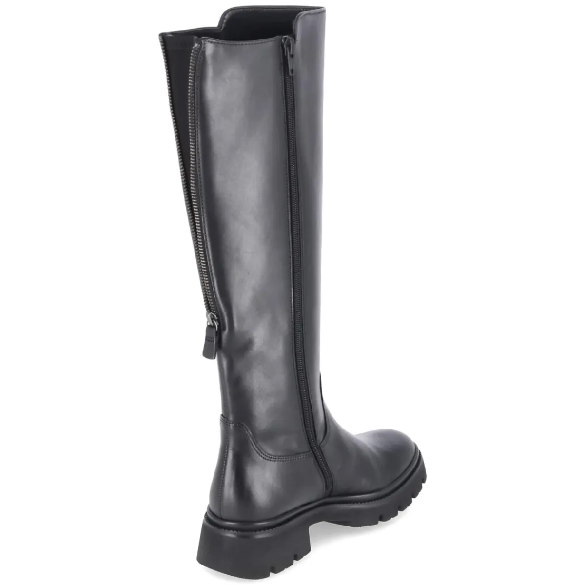 Der schwarze Damenstiefel von Gabor verbindet urbanen Chic mit durchdachtem Komfort. Der robuste Material-Mix aus Leder und Textil gibt Formstabilität, während die textile Decksohle und das weich gepolsterte Fußbett langes Tragen angenehm machen. Dank Wechselfußbett eignet sich das Modell auch für eigene Einlagen. Ein 4 cm hoher Blockabsatz sorgt für sicheren Stand, die runde Spitze schafft Bewegungsfreiheit. Praktische Reißverschlüsse erleichtern den Einstieg; zusätzlich erlaubt ein rückseitiger Zipper die Schafterweiterung. Mit Schaftweite M und Maßen von ca. 40 cm Höhe und 34 cm Umfang fällt der Stiefel normal aus. Die rutschfeste Profilsohle unterstützt bei wechselnden Untergründen. Modetipp: Zu einem Midirock aus Satin und einem strukturierten Wollmantel entsteht ein moderner Kontrast, den ein schwarzer Ledergürtel harmonisch aufgreift.