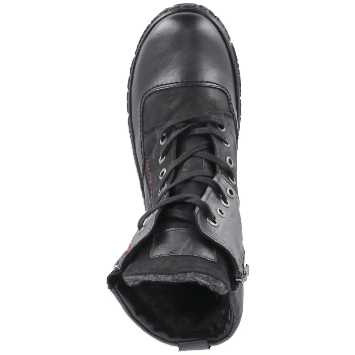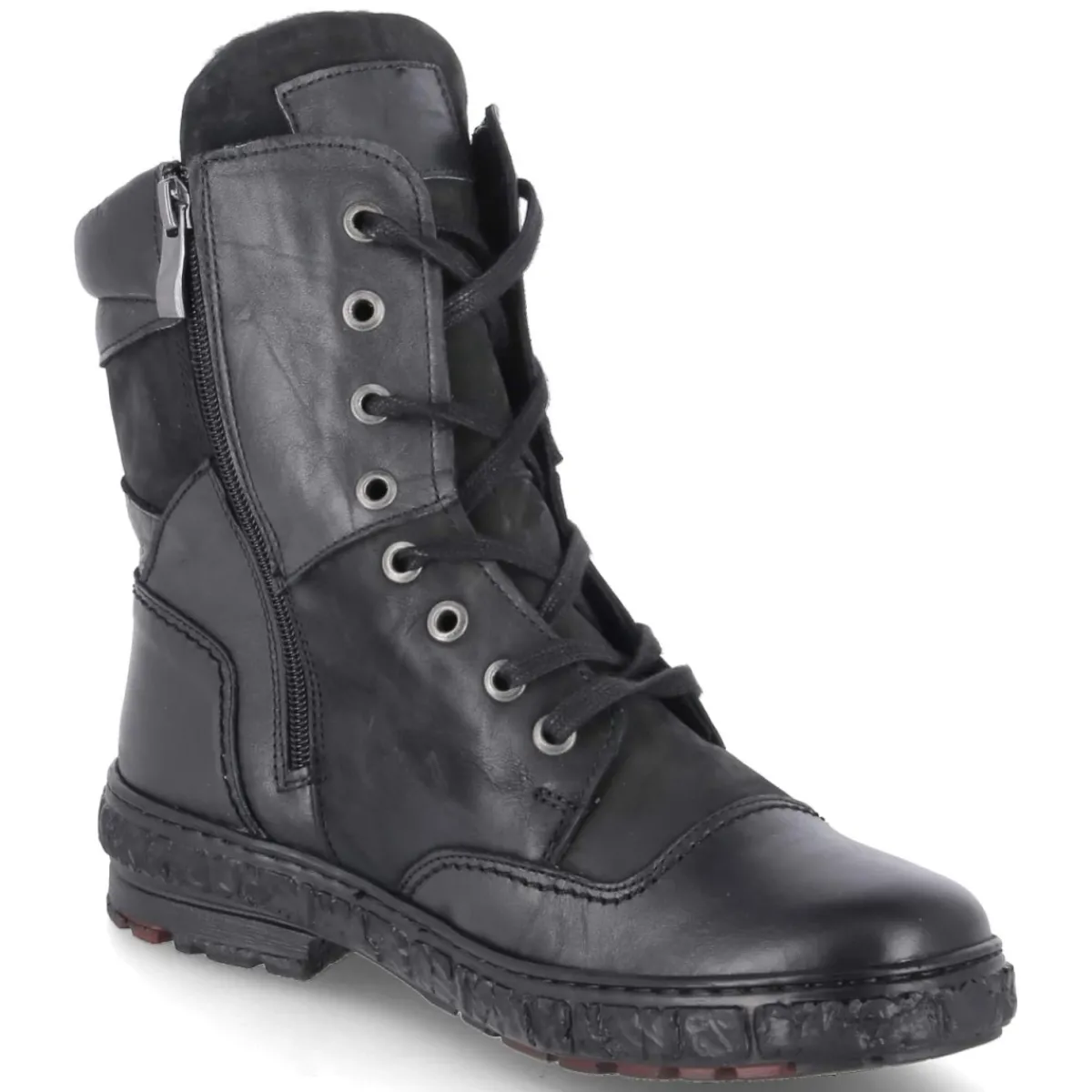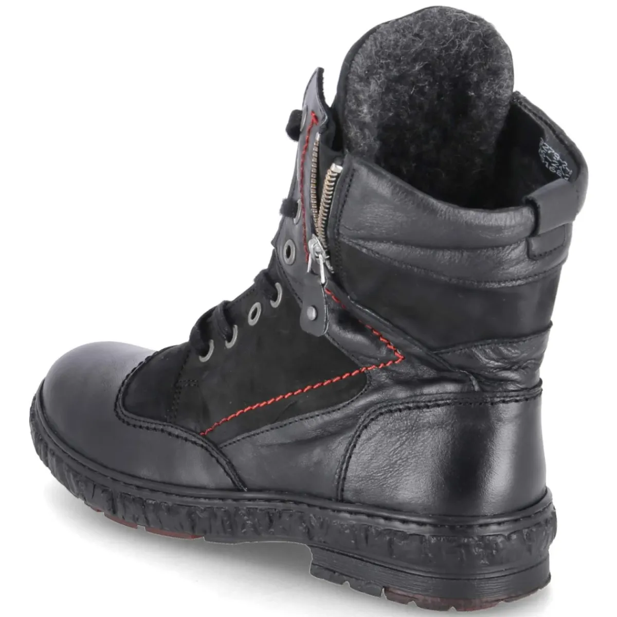 Der Winterboot von Krisbut vereint robuste Funktion und zeitloses Design. Schwarzes Glattleder mit Zehen- und Fersenkappe sorgt für Strapazierfähigkeit, während Warmfutter und die textile Decksohle angenehme Wärme an kalten Tagen bieten. Durch die Kombination aus Schnürung und seitlichem Reißverschluss gelingt der Einstieg bequem und der Sitz präzise. Ein 3 cm hoher Blockabsatz und die flexible Profilsohle gewährleisten sicheren Halt auf winterlichen Wegen. Die runde Schuhspitze und der gepolsterte Schaftrand erhöhen den Tragekomfort, das gepolsterte Wechselfußbett unterstützt zusätzlich und lässt sich bei Bedarf austauschen. Mit seinem relaxten Leichtgewicht-Charakter fällt das Modell normal aus und begleitet zuverlässig durch den Alltag. Modetipp: Zu einem langen Wollmantel, Strickkleid und Thermoleggings entsteht ein eleganter City-Look, der mit einem groben Schal harmonisch abgerundet wird.