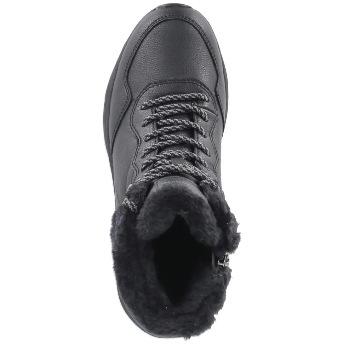 Der Tamaris Wintersneaker für Damen vereint zuverlässige Wärme mit urbanem Look. Das Obermaterial aus Textil und Synthetik zeigt sich besonders pflegeleicht, während das Warmfutter und die Kunstfellkrempe am gepolsterten Einstieg behagliche Gemütlichkeit in der kalten Jahreszeit liefern. Die runde Schuhspitze bietet angenehme Zehenfreiheit, gleichzeitig geben der verstärkte Fersen- und Zehenbereich stabilen Halt. Für bequemes An- und Ausziehen sorgt der zusätzliche Reißverschluss neben der Schnürung. Ein gut gepolstertes, herausnehmbares Wechselfußbett schafft Komfort und ermöglicht individuelle Einlagen. Die rutschfeste Profilsohle sichert Stand auf winterlichen Wegen. In klassischem Schwarz lässt sich der Sneaker vielseitig kombinieren und fällt schmaler aus – ideal für zierliche Füße. Modetipp: Zu Wollmantel, grobem Strick und Cropped-Jeans entsteht ein lässiger City-Winterlook mit eleganter Note.