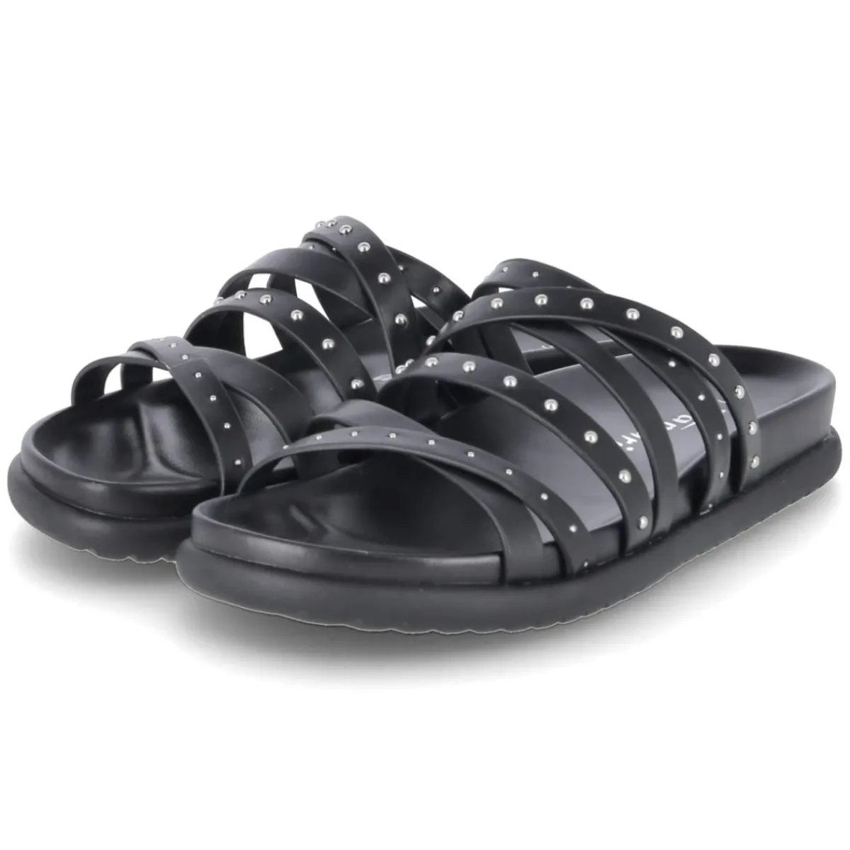 Diese Damen-Pantoletten von Tamaris setzen mit schwarzer, moderner Optik und edlem Nietenbesatz am Riemchen ein klares Statement. Das pflegeleichte Synthetik-Obermaterial überzeugt im Alltag, kleine Elastikeinsätze sorgen für angenehme Flexibilität beim Hineinschlüpfen. Die offene Schuhspitze und das vorgeformte, weiche Tieffußbett bieten luftigen Komfort, während die flexible, griffige Laufsohle sicheren Tritt vermittelt – ob in der City oder auf dem Weg ins Büro. Ohne Verschluss gestaltet sich das An- und Ausziehen mühelos, der Größenhinweis fällt normal aus und erleichtert die Wahl. Ein unaufdringlicher Allrounder, der minimalistische wie rockige Looks abrundet. Modetipp: Besonders stimmig zu fließenden Culottes und einer leichten Bluse oder als Kontrast zu Leder-Optik-Leggings und Oversize-Blazer.