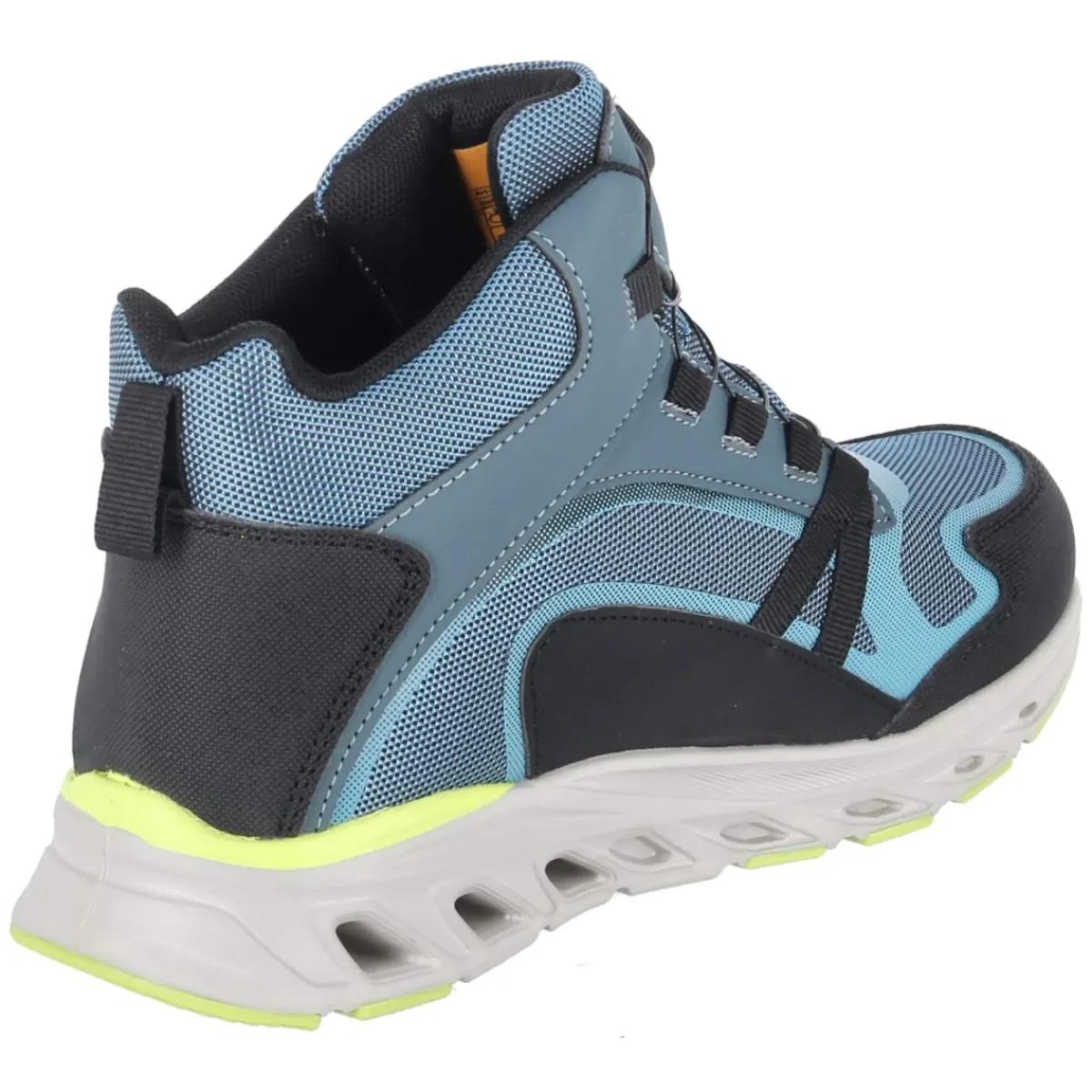 Die blauen Dockers Boots verbinden sportliche Optik mit durchdachter Funktion für den urbanen Alltag. Das Obermaterial aus Textil und Synthetik schützt dank wasserfester Ausrüstung vor Nässe, während die atmungsaktive Konstruktion für ausgeglichenes Klima sorgt. Der präzise Drehverschluss ermöglicht schnelles An- und Ausziehen und stabilen Halt, ergänzt durch verstärkten Fersen- und Zehenbereich sowie einen gepolsterten Einstieg und eine Anziehlasche. Innen bietet ein leichtes Futter Wärme an kühlen Tagen; die textile Decksohle und das gepolsterte, herausnehmbare Fußbett erhöhen den Komfort. Die flexible, rutschfeste Laufsohle gewährleistet Trittsicherheit. Mit runder Schuhspitze und regulärer Passform fällt das Modell größengetreu aus. Modetipp: Zu dunkler Denim, Softshell-Jacke und Stricksocken entsteht ein lässiger Look, der die dynamische Linie der Boots betont.