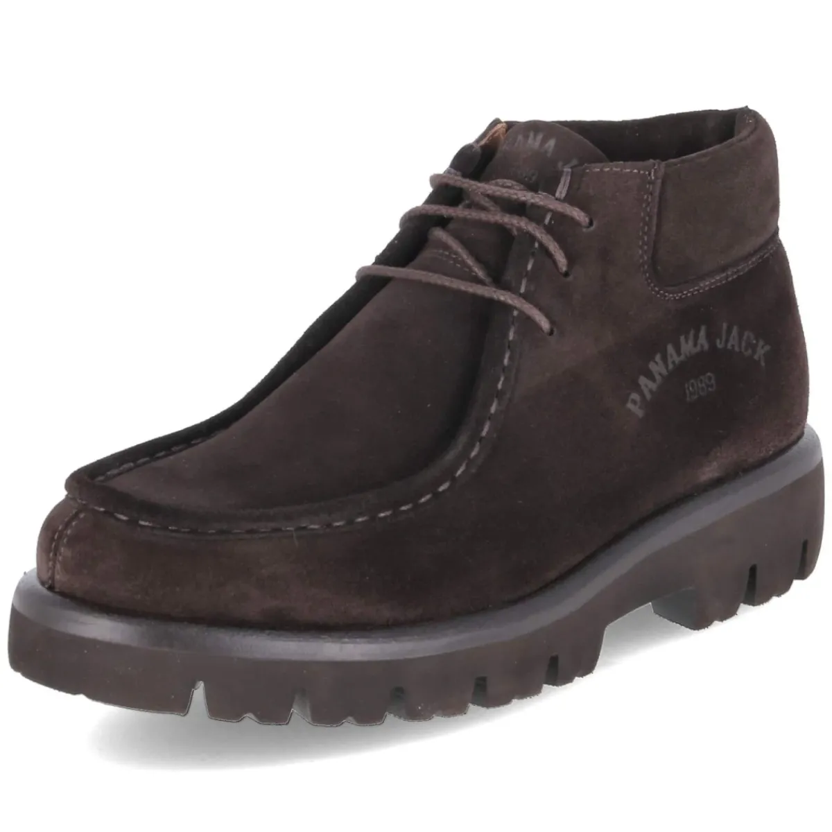 Der Panama Jack Boots LUCCA C 2 vereint maskulinen Charakter und Komfort. Das dunkelbraune Rauleder mit natürlichem Look wird durch eine markante Wulstnaht und die runde Spitze betont. Langlebiges Echtleder, eine lederne Decksohle und hautfreundliches Lederfutter sorgen für ein angenehmes Fußklima, während das Wechselfußbett individuellen Ansprüchen entgegenkommt. Der 4,5‑cm-Blockabsatz und die starke, dennoch leichte, rutschfeste Profilsohle geben stabilen Halt auf nassem Pflaster. Ein verstärkter Fersenbereich, gepolsterter Einstieg und praktische Anziehlasche erhöhen den Tragekomfort. Mit klassischem Schnürverschluss und größengetreuem Sitz ist dieses Herrenmodell ideal für Alltag und Freizeit. Modetipp: Zu Raw-Denim, Flanellhemd und Wollparka kombinieren; für einen smarten Twist ergänzt ein brauner Ledergürtel den Ton des Obermaterials.
