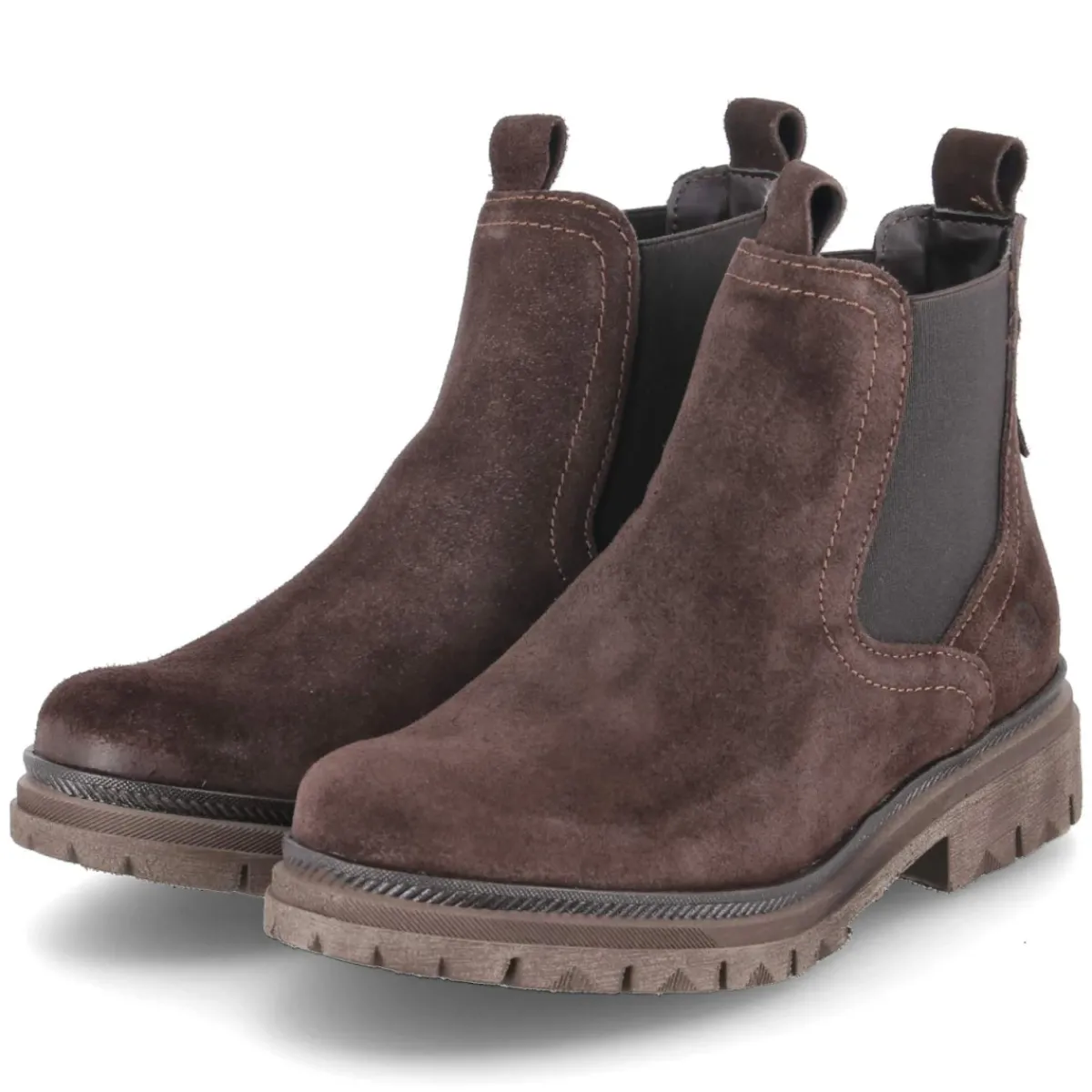 Zeitloses Design trifft Komfort: Die braunen Chelsea Boots von Tamaris überzeugen mit runder Spitze und einem souveränen 3,5‑cm-Blockabsatz, der Alltagstauglichkeit und Eleganz vereint. Der robuste Material-Mix aus Leder und Textil verleiht Struktur, während das weiche, gepolsterte Fußbett und die Decksohle aus Textil für angenehmes Tragegefühl sorgen. Ohne Verschluss, dafür mit zwei Elastikeinsätzen und zwei Anziehlaschen gelingt der Einstieg im Handumdrehen. Die flexible, rutschhemmende Profilsohle im dezenten Used Look sorgt für sicheren Halt auf unterschiedlichen Untergründen. Als Allrounder für Damen und Erwachsene mit normal ausfallender Passform lässt sich das Modell vielseitig kombinieren – von Denim bis Kleid. Modetipp: Für einen modernen City-Look mit Wollmantel in Kamel, Straight-Jeans und einem cognacfarbenen Ledergürtel stylen; dazu feine Stricksocken in Melangeoptik zeigen.