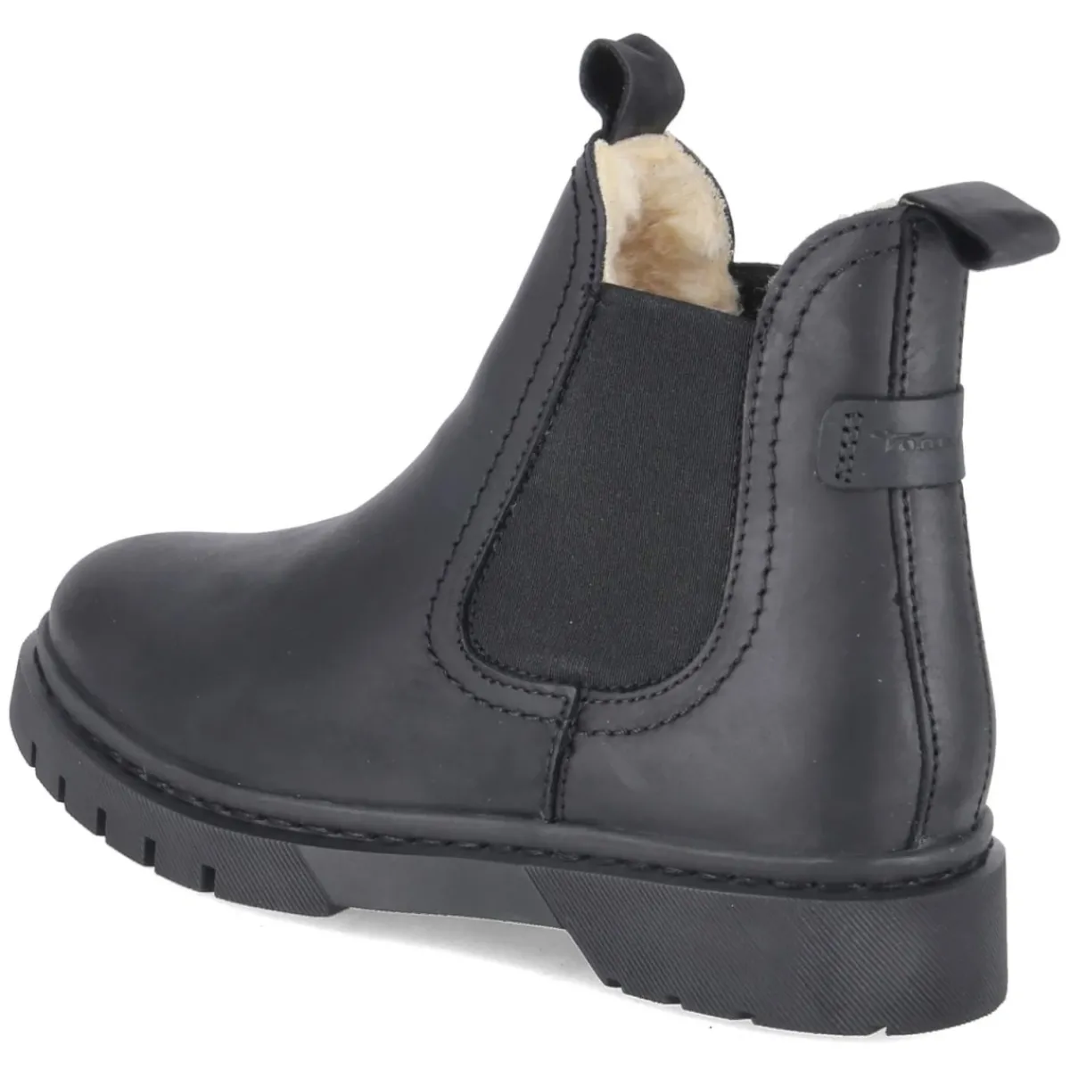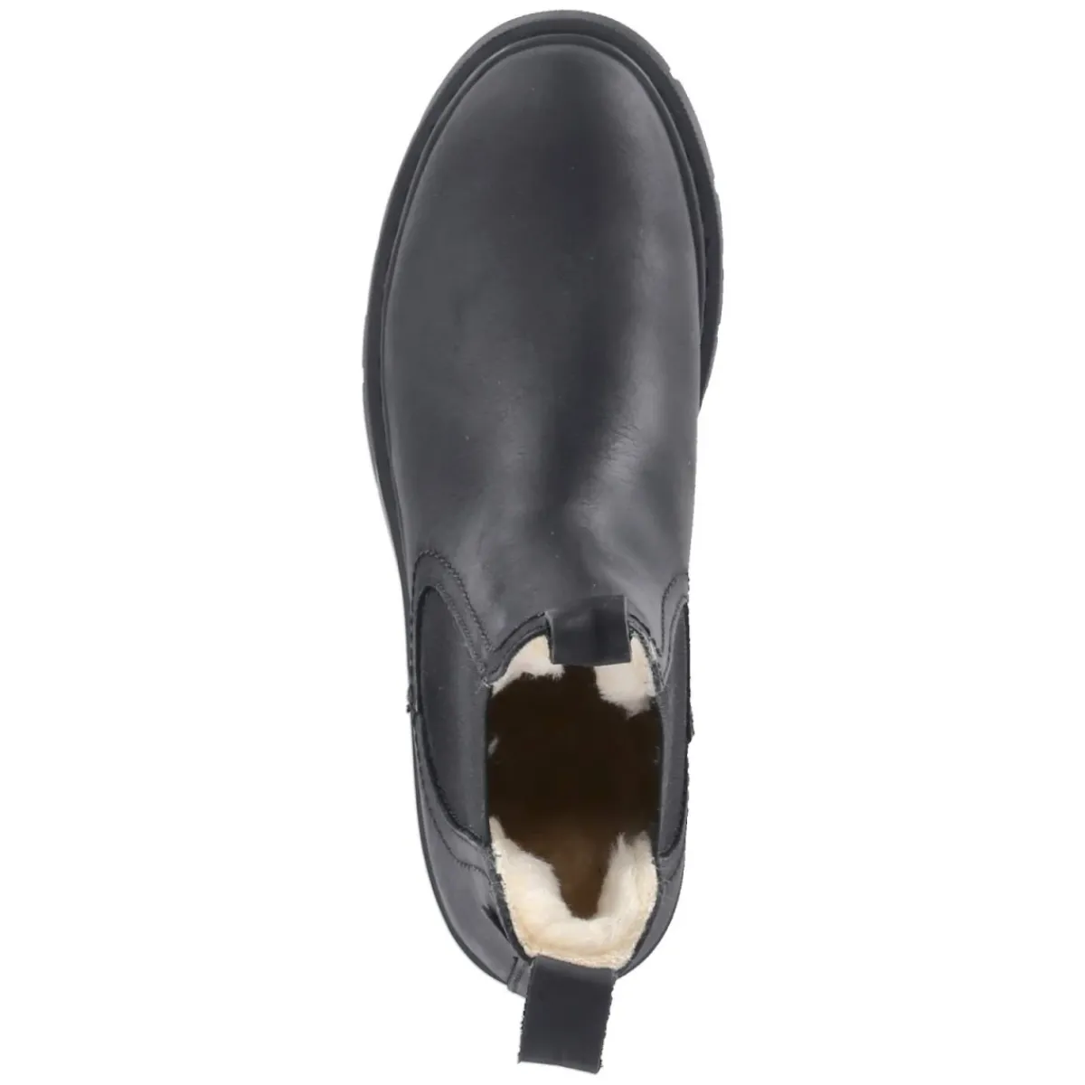 Der Chelsea Boot von Tamaris zeigt eine gelungene Mischung aus zeitloser Silhouette und funktionaler Ausstattung. Glattes, langlebiges Echtleder in Schwarz formt den cleanen Look, während die runde Schuhspitze und der 3 cm hohe Blockabsatz einen stabilen Auftritt sichern. Zwei große, seitliche Elastikeinsätze und die praktische Anziehlaschen-Dopplung erleichtern den Einstieg ganz ohne Verschluss, die verstärkte Ferse erhöht die Formstabilität. Für kalte Tage sorgt das Warmfutter in Kombination mit einer weichen Textildecksohle für behaglichen Tragekomfort. Die flexible, rutschfeste Profilsohle bietet zuverlässigen Halt auf nassem Asphalt. Der Schnitt fällt normal aus und passt vielseitig zu Alltags- und Businesslooks. Modetipp: Besonders harmonisch wirkt das Modell zu Wollmantel, Straight-Leg-Denim und feinem Strick.