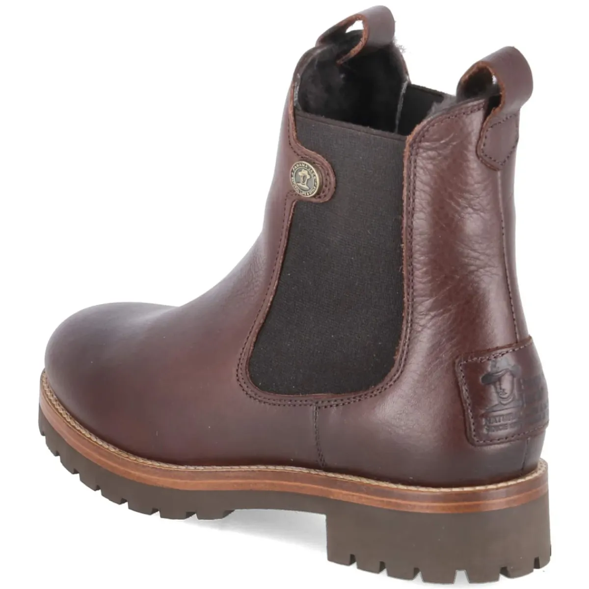 Der Chelsea Boot FRANCESCA IGLOO von Panama Jack vereint wetterfeste Funktion und zeitlose Ästhetik. Das hochwertige Leder in sattem Braun umschließt einen warm gefütterten Schaft mit echtem Lammfell, der bei kühlen Temperaturen zuverlässig wärmt, während die atmungsaktive Ausstattung für ausgeglichenes Fußklima sorgt. Die wasserfesten Eigenschaften und die robuste Profilsohle geben Sicherheit auf nassem Untergrund. Dank zwei Anziehlaschen und dem Schlupfdesign gelingt der Einstieg mühelos. Ein 3 cm hoher Blockabsatz, die runde Spitze sowie die mit Logo verstärkte Ferse unterstreichen den markanten Look. Die lederne Decksohle vermittelt ein natürliches Tragegefühl, das herausnehmbare Fußbett bietet Komfort und die Option für eigene Einlagen. Die Passform fällt normal aus und lässt sich vielseitig kombinieren – vom City-Styling bis zum Wochenend-Look. Modetipp: Harmonisch wirkt der Boot zu Wollmantel, Strickkleid und blickdichter Strumpfhose in gedeckten Tönen.