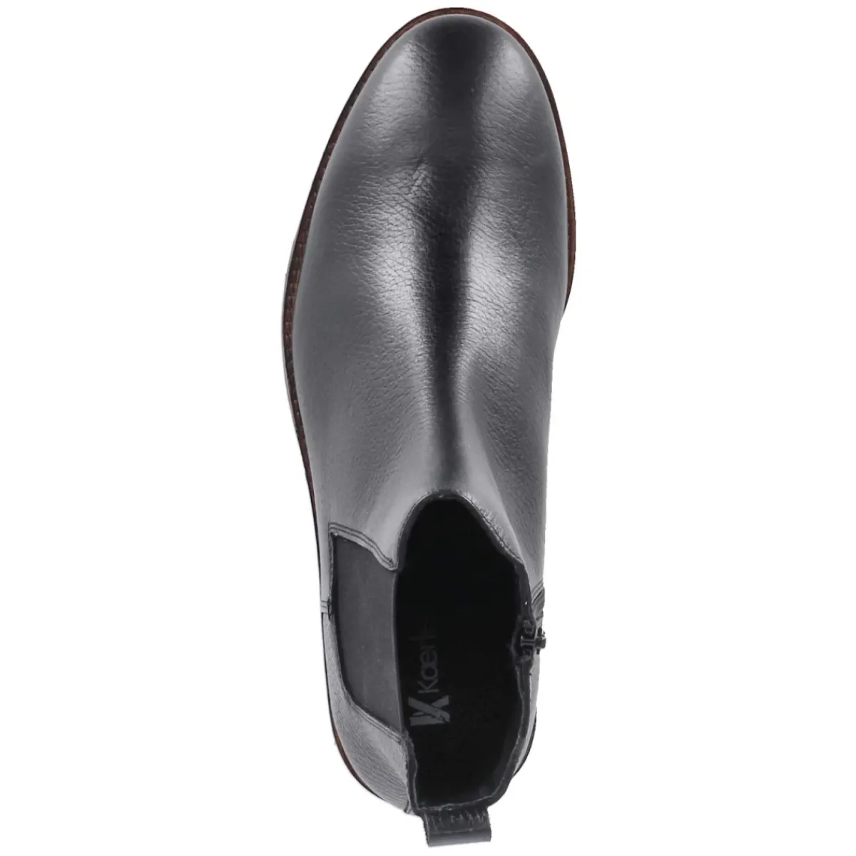 Kaerlek präsentiert klassische Chelsea Boots in tiefem Schwarz, gefertigt aus glattem, langlebigem Echtleder. Die runde Schuhspitze und die verstärkte Ferse verleihen dem Design eine klare, maskuline Linie, während der seitliche Elastikeinsatz und die Anziehlasche das Anziehen zusätzlich erleichtern. Ein bequemer Reißverschlußeinstieg sorgt für komfortables Hineinschlüpfen, die flexible, griffige Laufsohle überzeugt mit sicherem Tritt auf urbanem Terrain. Der 4 cm hohe Blockabsatz bietet Stabilität und eine angenehme Höhe, die Decksohle aus Leder sorgt für ein wertiges Fußklima. Das Modell fällt normal aus und richtet sich an Herren, die einen zuverlässigen Begleiter für jeden Tag suchen. Modetipp: Mit Raw-Denim, weißem Oxford-Hemd und dunkelgrauem Wollmantel entsteht ein smart-casual Look, der vom Büro bis zum Dinner überzeugt.