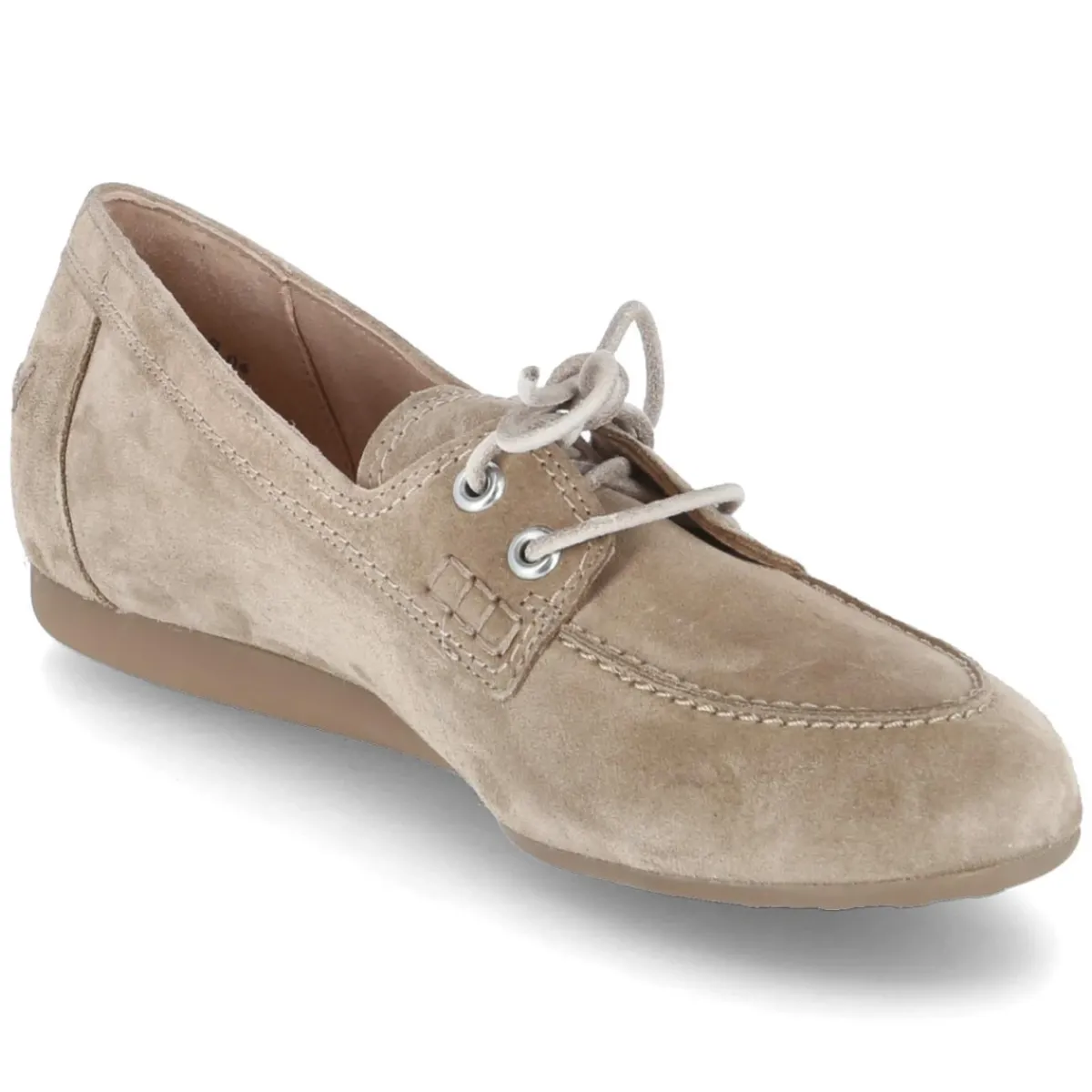 Der Damen-Halbschuh von Paul Green verbindet zeitlose Schlichtheit mit hochwertiger Verarbeitung. Robustes Echtleder in softem beigem Rauleder sorgt für einen natürlichen Look, während Lederfutter und eine leicht gepolsterte Lederdecksohle angenehmen Tragekomfort bieten. Die runde Spitze und die Schnürung sichern eine bequeme, individuell regulierbare Passform; die Größe fällt normal aus. Dank geringem Gewicht und verstärkter Ferse bleibt der Fuß auch an langen Tagen gut geführt. Die flexible, griffige und rutschhemmende Laufsohle gibt zuverlässigen Halt auf verschiedensten Untergründen. Ein vielseitiger Begleiter, der Casual-Styles ebenso abrundet wie smarte Office-Outfits. Modetipp: Ton-in-Ton mit Sand- oder Creme-Nuancen und verkürzter Straight-Jeans entsteht ein ruhiger, moderner City-Look.