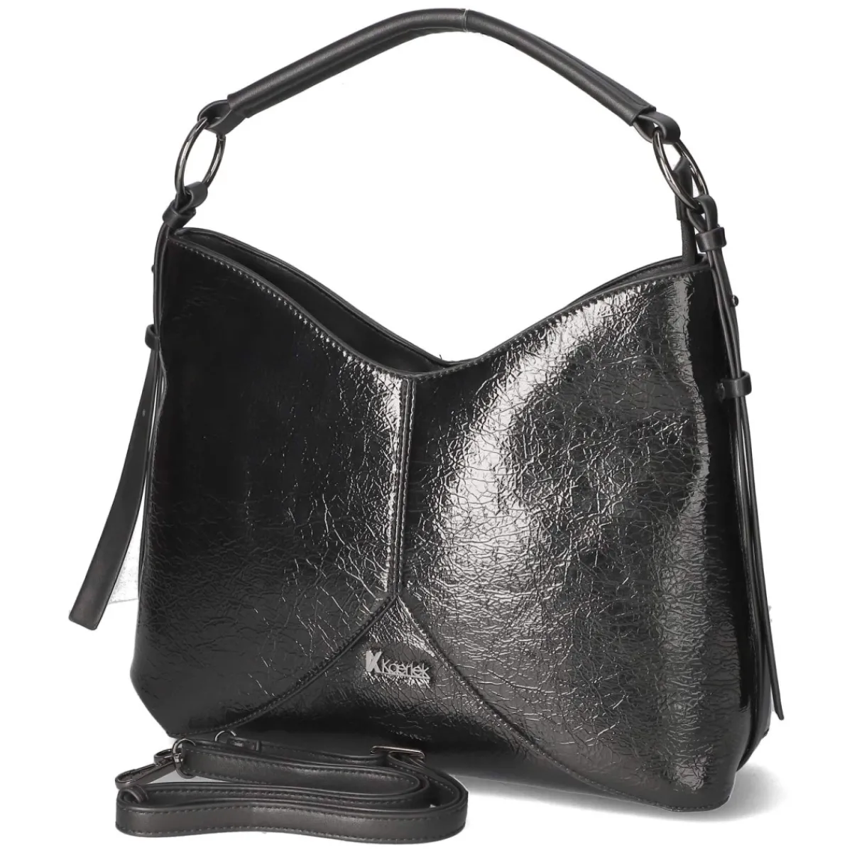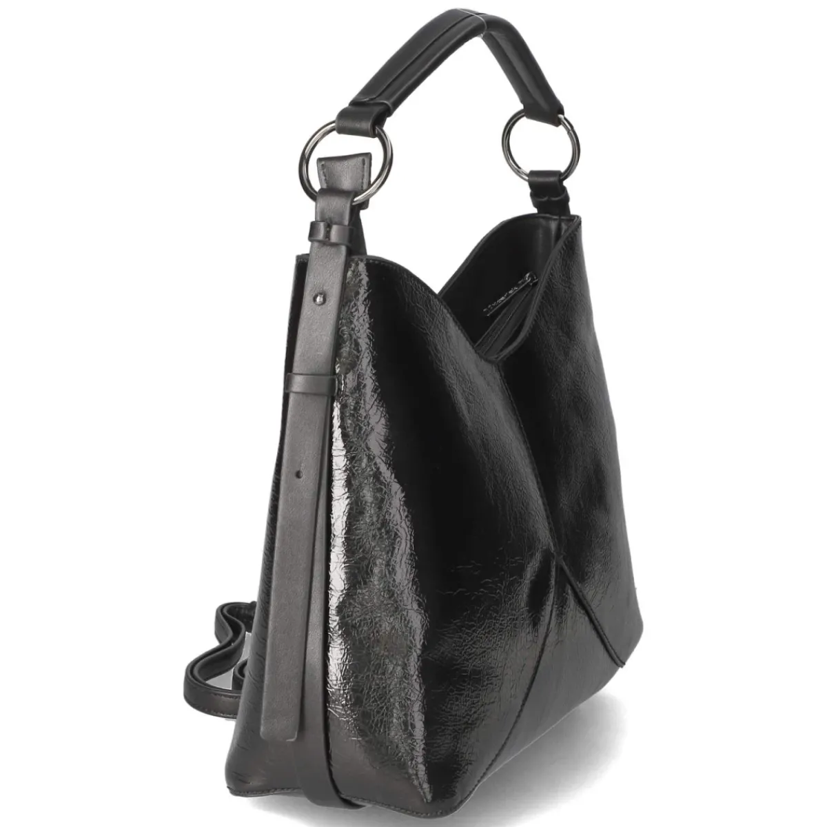 Diese schwarze Handtasche für Damen verbindet klare Linien mit subtilem Glamour. Platinfarbene Akzente und feine Markendetails setzen elegante Highlights, während ein Zierriemen die strukturierte Form betont. Mit ca. 21 x 32 x 10 cm und rund 6,5 Litern Volumen bietet sie Raum für tägliche Essentials. Ein sicherer Reißverschluss schützt den Inhalt; innen schaffen ein Reißverschlussfach und zwei Steckfächer Ordnung für Smartphone, Schlüssel und kleine Beauty-Begleiter. Flexible Tragemöglichkeiten dank festem Handriemen (ca. 30 cm) und abnehmbarem, verstellbarem Schulterriemen (ca. 130 cm) lassen die Tasche vom Office-Begleiter zur Abendauswahl wechseln. Modetipp: Mit weißer Bluse, Zigarettenhose und spitzen Slingbacks kombinieren, dazu silberfarbener Schmuck, der die platinfarbenen Details aufgreift.