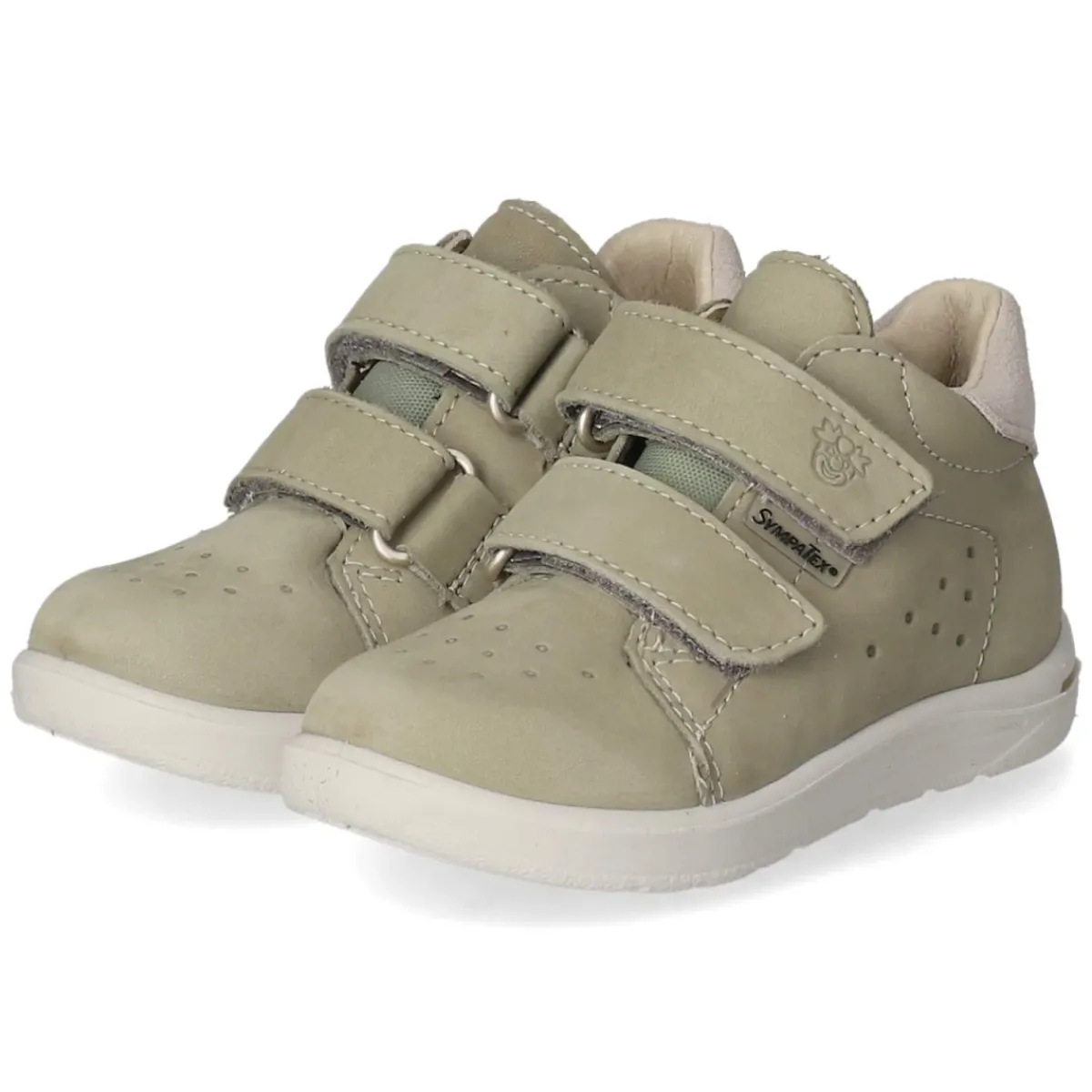 Der Klettschuh LAAS von Pepino präsentiert sich in frischem Grün und kombiniert kindgerechten Komfort mit zuverlässiger Alltagstauglichkeit. Weiches Rauleder schmiegt sich angenehm an, während die runde Schuhspitze und die Weite Mittel natürliche Zehenfreiheit bieten. Die Sympatex-Membran schützt vor Nässe und bleibt zugleich atmungsaktiv – ideal für Spielplatz, Kita und Spaziergänge. Ein gepolstertes Wechselfußbett unterstützt kleine Füße sanft, kann bei Bedarf herausgenommen oder ausgetauscht werden, und die Decksohle aus Leder sorgt für ein angenehmes Fußklima. Der leicht gepolsterte Einstieg und der bequeme Klettverschluss erleichtern das An- und Ausziehen, die verstärkte Ferse gibt Halt bei jedem Schritt. Eine flexible, rutschhemmende Laufsohle macht jede Bewegung mit. Fällt normal aus. Modetipp: Zu Jeans, Softshelljacke und gemusterter Beanie entsteht ein lässiger Look, der das kräftige Grün stilvoll aufgreift.