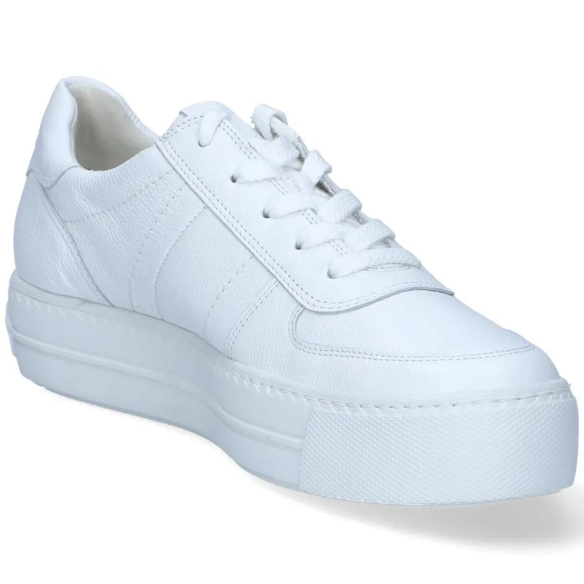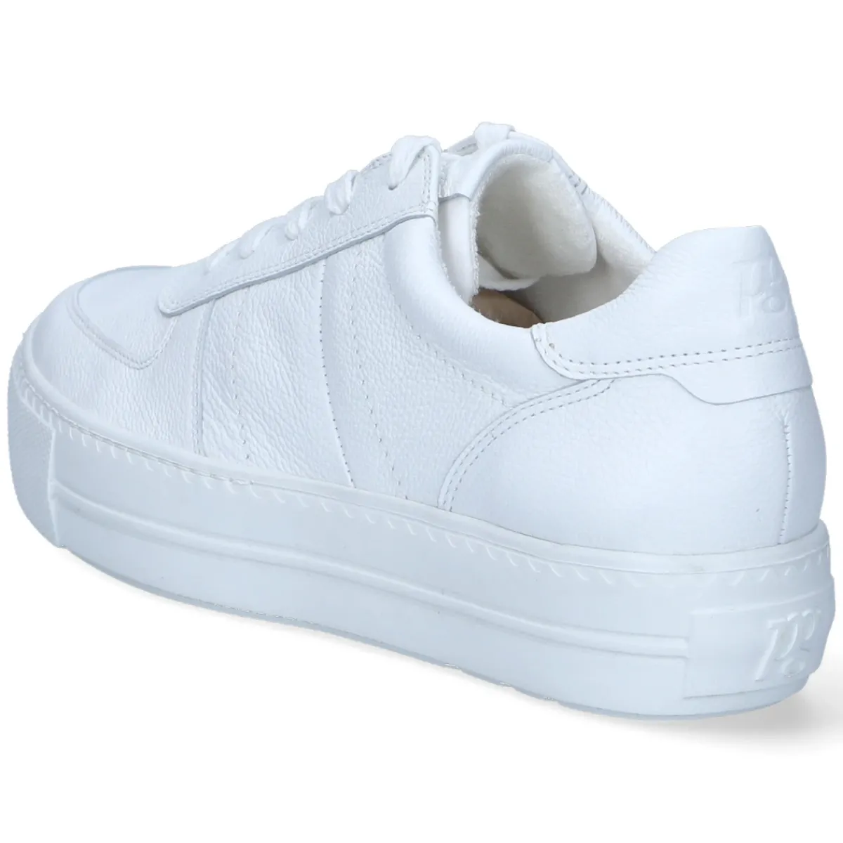 Der Low Sneaker von Paul Green präsentiert sich in klarem Weiß als vielseitiger Begleiter für den Alltag. Feines Glattleder aus langlebigem Echtleder verleiht dem Modell eine hochwertige Anmutung, während die runde Spitze und die sorgfältig gesetzten Ziernähte den dezenten Look abrunden. Innen sorgt ein weiches Textilfutter für angenehmes Klima, die gepolsterte Lederdecksohle und das komfortable Fußbett bieten langanhaltenden Tragekomfort. Eine gepolsterte Einstiegszone schont den Knöchel, verstärkte Partien an Zehen und Ferse geben Stabilität. Die schnürbare Vorderpartie ermöglicht eine individuelle Anpassung, die stabile, rutschhemmende Laufsohle gewährleistet sicheren Tritt. Dezente Markendetails unterstreichen den puristischen Stil. Modetipp: Mit Cropped-Jeans, klassischem Trenchcoat und einer filigranen Crossbody-Bag entsteht ein moderner City-Look mit cleanem Finish.