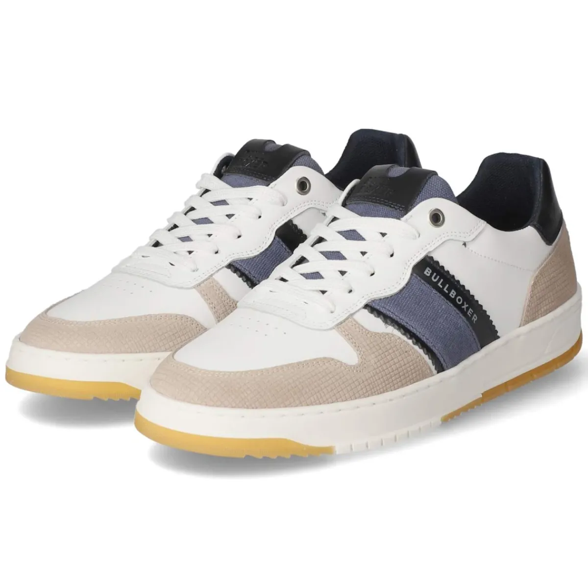 Der Low Sneaker von Bullboxer verbindet klare Linien mit sportlichem Anspruch und schafft einen zuverlässigen Begleiter für den Alltag. Weißes Glattleder aus atmungsaktivem Echtleder sorgt mit gelochtem Schuhdeck für ein frisches Trageklima, während der verstärkte Zehen- und Fersenbereich in taupefarbenem Rauleder zusätzliche Stabilität liefert. Schwarzfarbene Akzente und dunkelblaue Zierstreifen aus Textil setzen dezente Kontraste, die das dynamische Design betonen. Der rund zulaufende Leisten, der klassische Schnürverschluss und der gepolsterte Einstieg ergänzen den komfortablen Auftritt. Innen verwöhnt ein leichtes Textilfutter, die textile Decksohle und das komfortable Wechselfußbett erlauben individuelle Anpassungen. Eine flexible, rutschhemmende Laufsohle steigert die Alltagstauglichkeit, die handwerkliche Fertigung unterstreicht den Qualitätsanspruch. Der Schuh fällt normal aus. Modetipp: Besonders stimmig zu Slim-Chino und Strickpolo oder zur hellen Denim mit cleanem Overshirt.