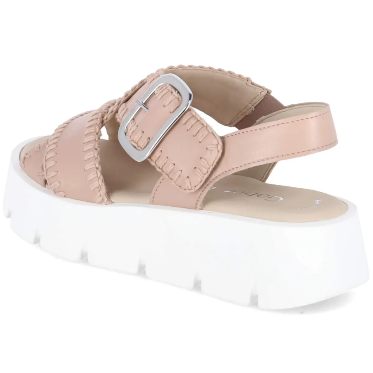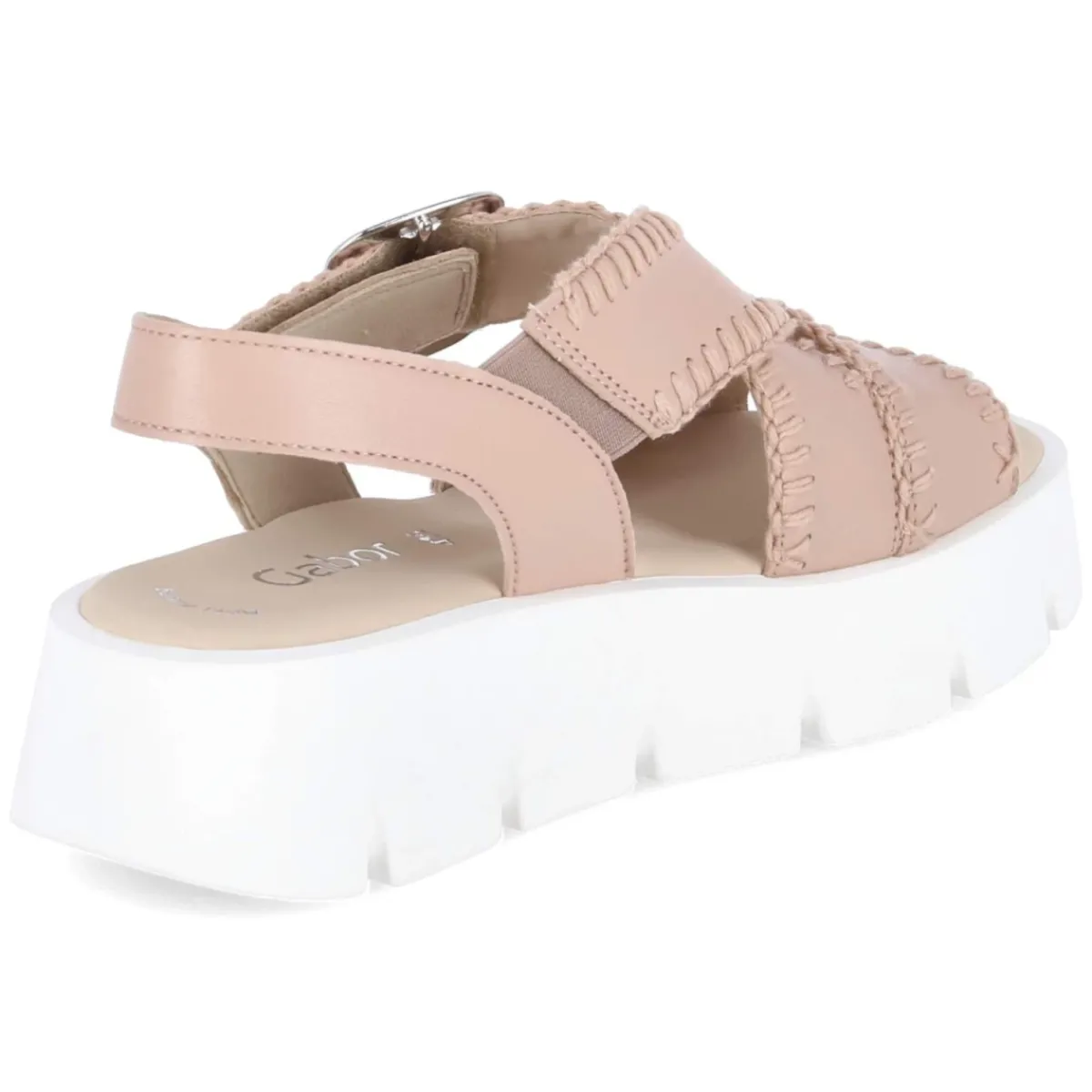 Diese Gabor Sandalen verbinden feminine Leichtigkeit mit kompromisslosem Komfort. Langlebiges Echtleder in zartem Rosa und ein Obermaterial aus feinem Glattleder setzen einen edlen Akzent, während die offene Schuhspitze sommerliche Luftigkeit bringt. Gekreuzte, breite Riemen mit markanten Ziernähten umspielen den Fuß und werden durch einen komfortablen Klettverschluss ergänzt; der Klettriemen mit goldener Zierschnalle liefert einen dezenten Eyecatcher. Die leicht vorgeformte, weiche Lederdecksohle und das gepolsterte Fußbett sorgen den ganzen Tag über für Wohlgefühl. Eine Plateausohle mit Profil und 4,5 cm Absatzhöhe bietet sicheren Stand und sanfte Höhe. Die Passform fällt normal aus, ideal für Damen und Erwachsene. Modetipp: Besonders harmonisch wirkt das Modell zu fließenden Midikleidern in Creme oder zu Denim-Shorts mit einer luftigen Bluse; Schmuck in warmen Goldtönen unterstreicht die Schließe.