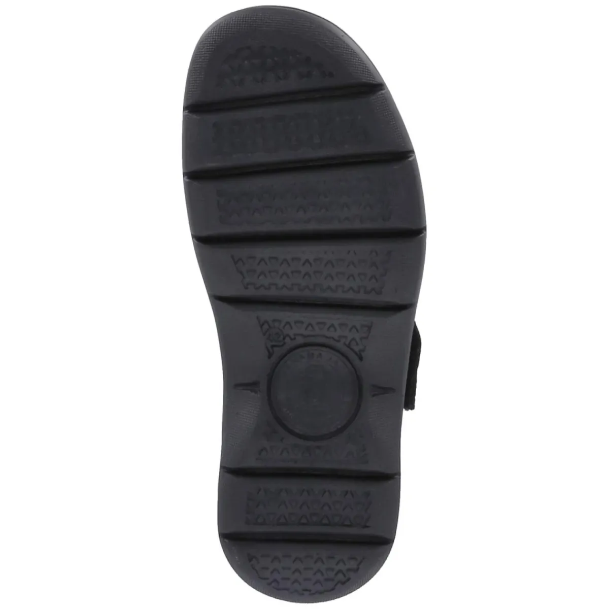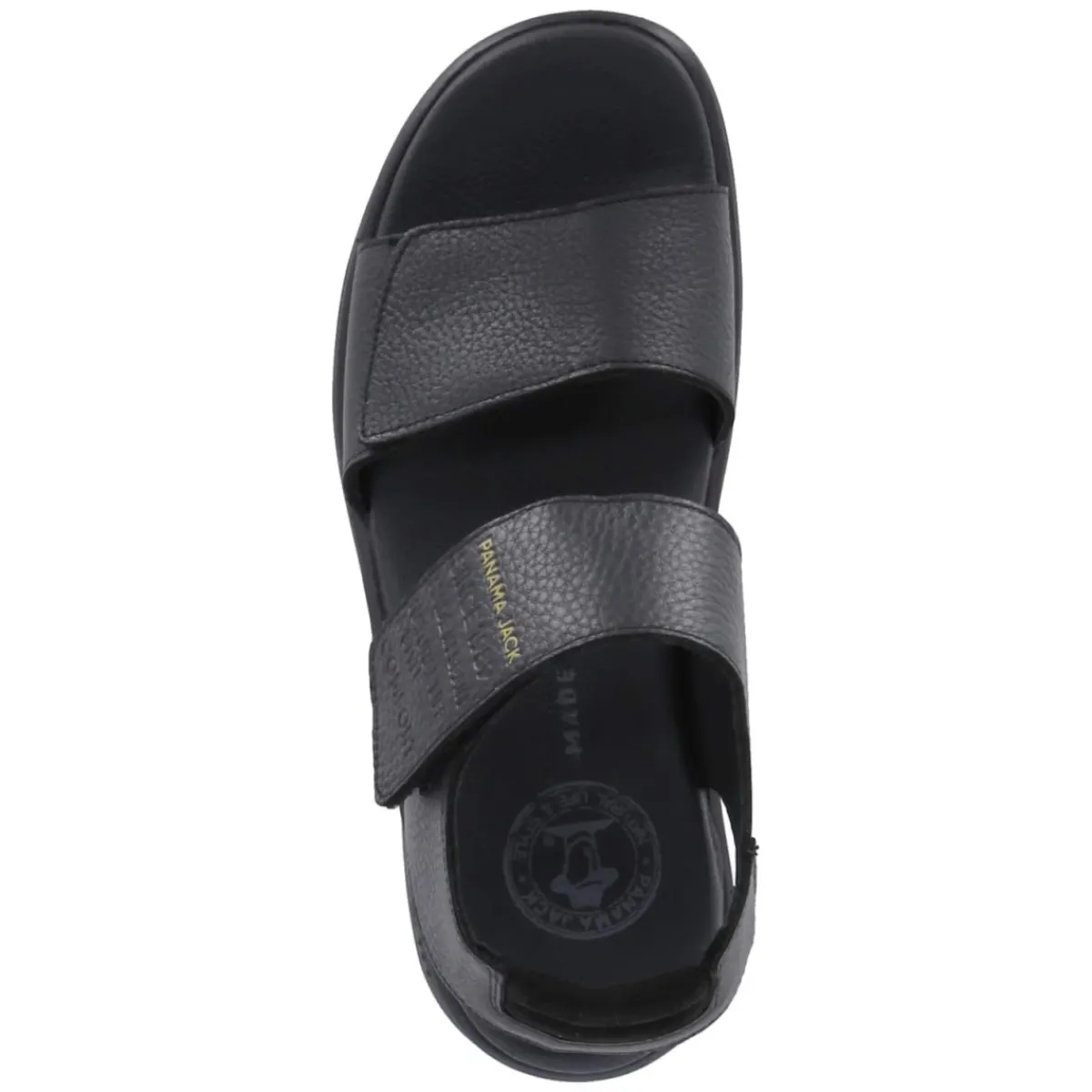 Panama Jack präsentiert mit den Sandalen RUSSEL C1 einen verlässlichen Begleiter für warme Tage. Das Obermaterial aus Glattleder überzeugt durch langlebiges Echtleder, während ein hautfreundliches Lederfutter für angenehmes Fußklima sorgt. Zwei breite Riemen mit praktischen Klettverschlüssen erlauben schnelle Anpassungen, ergänzt durch einen Riemen mit Fersenpolster für zusätzlichen Halt. Die leicht vorgeformte, weiche Lederdecksohle unterstützt den Fuß komfortabel, die flexible Laufsohle gewährleistet ein natürliches Abrollen. Offene Schuhspitze und die markentypisch solide Verarbeitung unterstreichen den funktionalen Anspruch. In zeitlosem Schwarz und mit normal ausfallender Passform eignet sich dieses Herrenmodell für Alltag und Reise gleichermaßen. Modetipp: Mit Leinenhemd und schmalen Chino-Shorts wirkt der Look lässig und zugleich gepflegt.