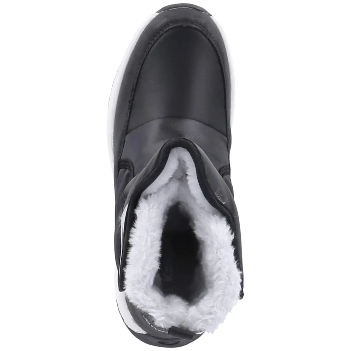 Der Snowboot K-PE BELLE RTX von Kangaroos begleitet kleine Entdecker zuverlässig durch nasse und kalte Tage. Das Obermaterial aus Textil und Synthetik ist wasserfest und zugleich atmungsaktiv, während das warme Kunstfellfutter ein behagliches Klima bewahrt. Ein gepolsterter Einstieg und die rund geformte Spitze sorgen für Komfort, die flexible, rutschhemmende Profilsohle gibt Halt auf glatten Wegen. Der bequeme Klettverschluss erleichtert das An- und Ausziehen und der verstärkte Zehen- und Fersenbereich erhöht die Robustheit im Alltag. Die gepolsterte, herausnehmbare Decksohle unterstützt den Fuß und lässt sich zum Trocknen einfach entnehmen. Optisch überzeugt das schwarze Design mit neongelben Highlights. Der Schuh fällt normal aus und eignet sich ideal für den Schulweg wie für den Spielplatz. Modetipp: Mit Softshellhose und wattierter Jacke in Schwarz wirkt der Look modern; passende Accessoires in Neon greifen die Akzente auf.