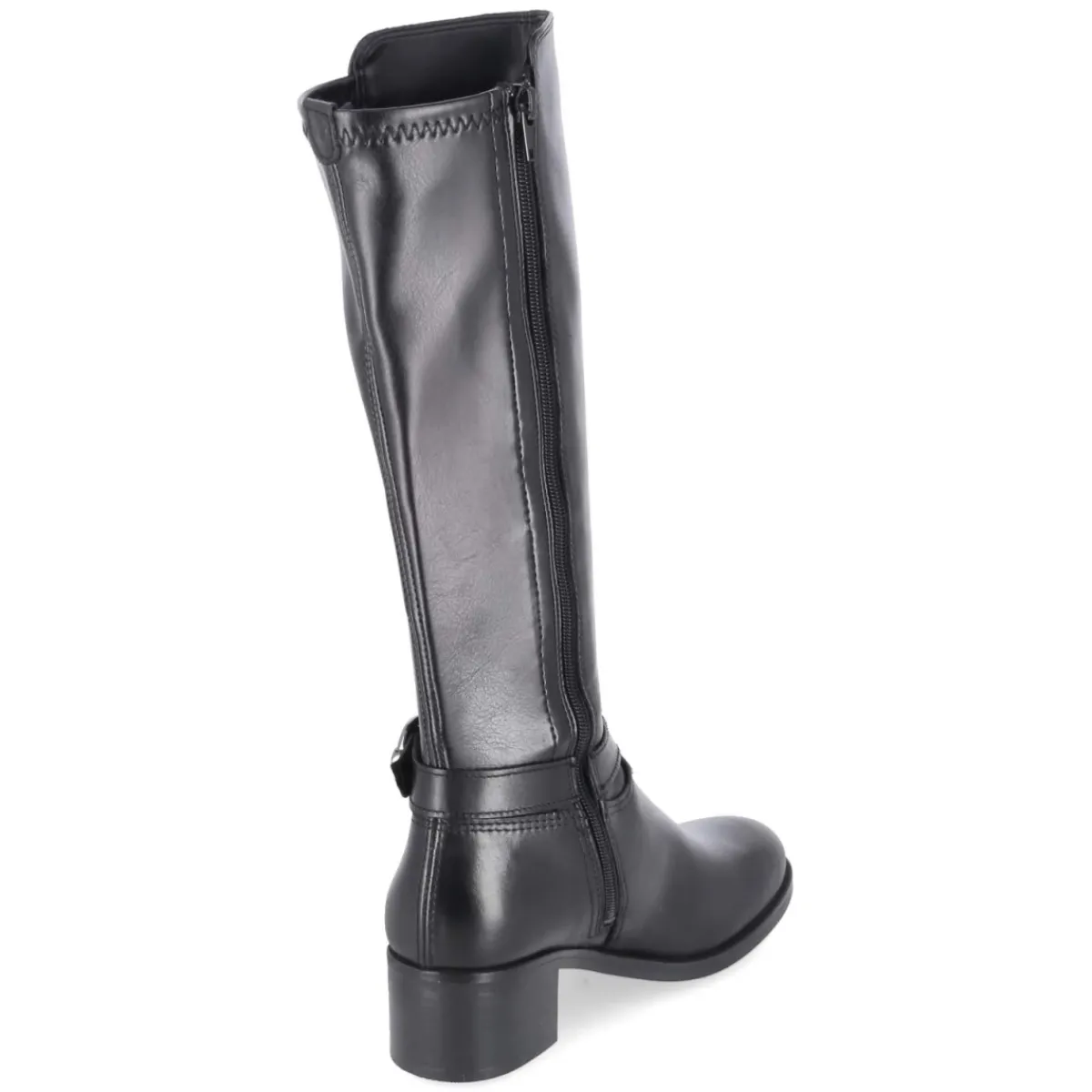 Der schwarze Stiefel von Tamaris vereint urbanen Chic mit funktionalen Details. Das Obermaterial aus Leder und Synthetik zeigt einen robusten Material-Mix, während der hintere Teil des Schafts aus stretchiger Synthetik angenehme Bewegungsfreiheit bietet. Ein zierender Knöchelriemen setzt einen dezenten Akzent, die runde Spitze und der 4,5 cm hohe Blockabsatz sorgen für zeitlosen Look und sicheren Stand. Die flexible, rutschfeste Laufsohle und das gepolsterte Fußbett erhöhen den Komfort im Alltag, die Decksohle aus Textil und Synthetik ergänzt das angenehme Tragegefühl. Mit Reißverschluss leicht anzuziehen, Schaftmaß ca. 33 cm x 34 cm (HxU). Fällt schmaler aus – eine Nummer größer bestellen. Modetipp: Besonders harmonisch zu Strickkleid und Oversize-Mantel oder als Kontrast zu lederähnlicher Leggings und klassischem Trenchcoat.