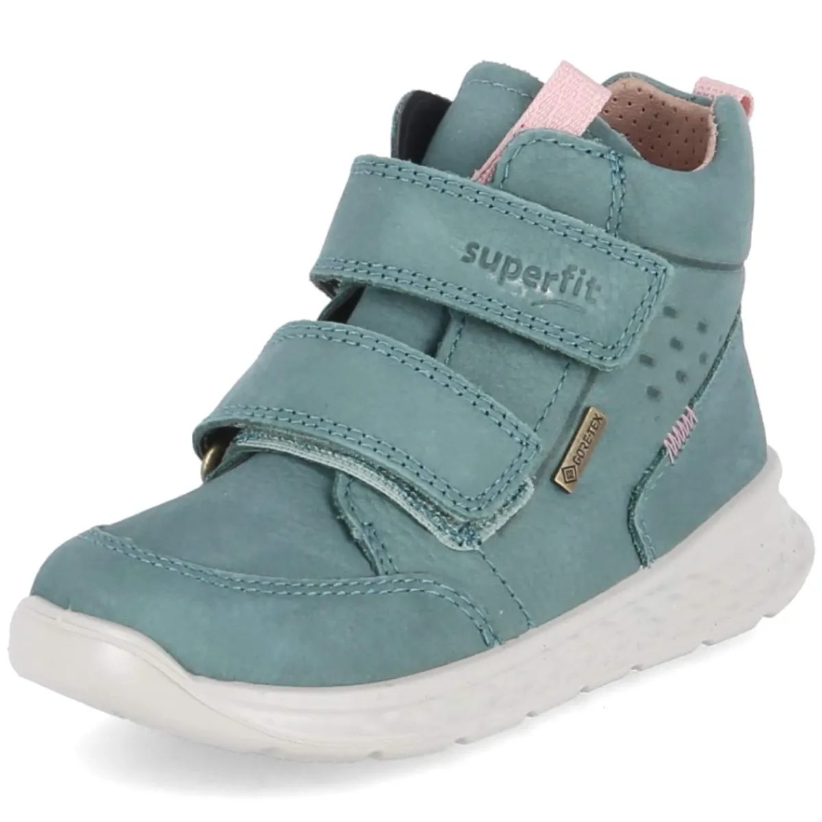 Die Superfit Stiefeletten BREEZE verbinden kindgerechten Komfort mit zuverlässigem Wetterschutz. Das robuste Rauleder in frischem Grün wird von zwei praktischen Klettverschlüssen gehalten, die ein schnelles An- und Ausziehen ermöglichen und sicheren Halt geben. Dank wasserfester und zugleich atmungsaktiver Eigenschaften bleiben kleine Füße bei wechselhaftem Wetter angenehm trocken. Ein leichtes Warmfutter unterstützt an kühlen Tagen, während der gepolsterte Einstieg und die textile, herausnehmbare Decksohle mit Wechselfußbett zusätzlichen Komfort bringen. Der runde Leisten bietet Zehenfreiheit, verstärkte Bereiche an Zehen und Ferse erhöhen die Stabilität. Mit profilierter, rutschhemmender Laufsohle ist Trittsicherheit auf Spielplatz und Schulweg gewährleistet. Die Passform fällt normal aus. Modetipp: Das satte Grün harmoniert besonders gut mit Denim, grauen Strickmützen und gesteppter Jacke in Navy.