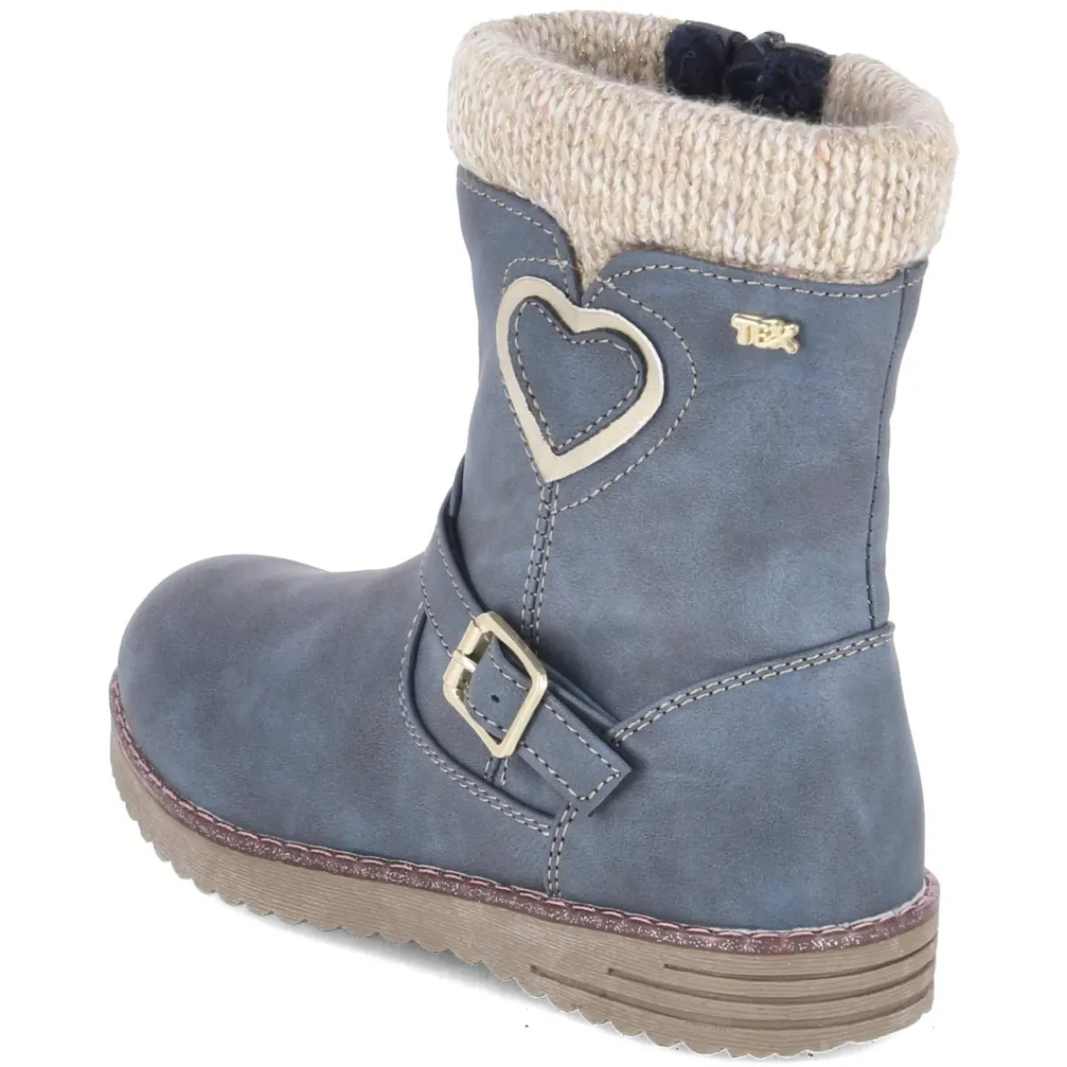Der blaue Winterstiefel von Indigo verbindet kindgerechten Schutz mit verspielten Details. Warmfutter schenkt wohliges Klima, während die atmungsaktive Ausstattung und die wasserfeste, wasserabweisende Verarbeitung trockene Füße bei Schnee und Matsch unterstützen. Das Obermaterial aus Textil und Synthetik ist robust, die runde Spitze bietet Zehenfreiheit. Ein seitlicher Reißverschluss erleichtert den Einstieg, zusätzlich umspielt ein weicher Strickeinstieg mit goldenem Glitzer den Schaft. Zierriemen mit Schnalle über dem Spann, seitlicher Herzpatch und ein rosa glitzernder Sohlenrahmen setzen funkelnde Akzente. Die flexible, griffige Laufsohle sorgt für sicheren Halt, die verstärkte Ferse erhöht Stabilität im Alltag. Der Stiefel fällt größengetreu aus und lässt sich vielfältig kombinieren – ideal für Grundschulkinder. Modetipp: Zu Thermoleggings in Bordeaux und einem cremefarbenen Strickpullover entsteht ein harmonischer Winter-Look mit farbigen Glitzer-Highlights.