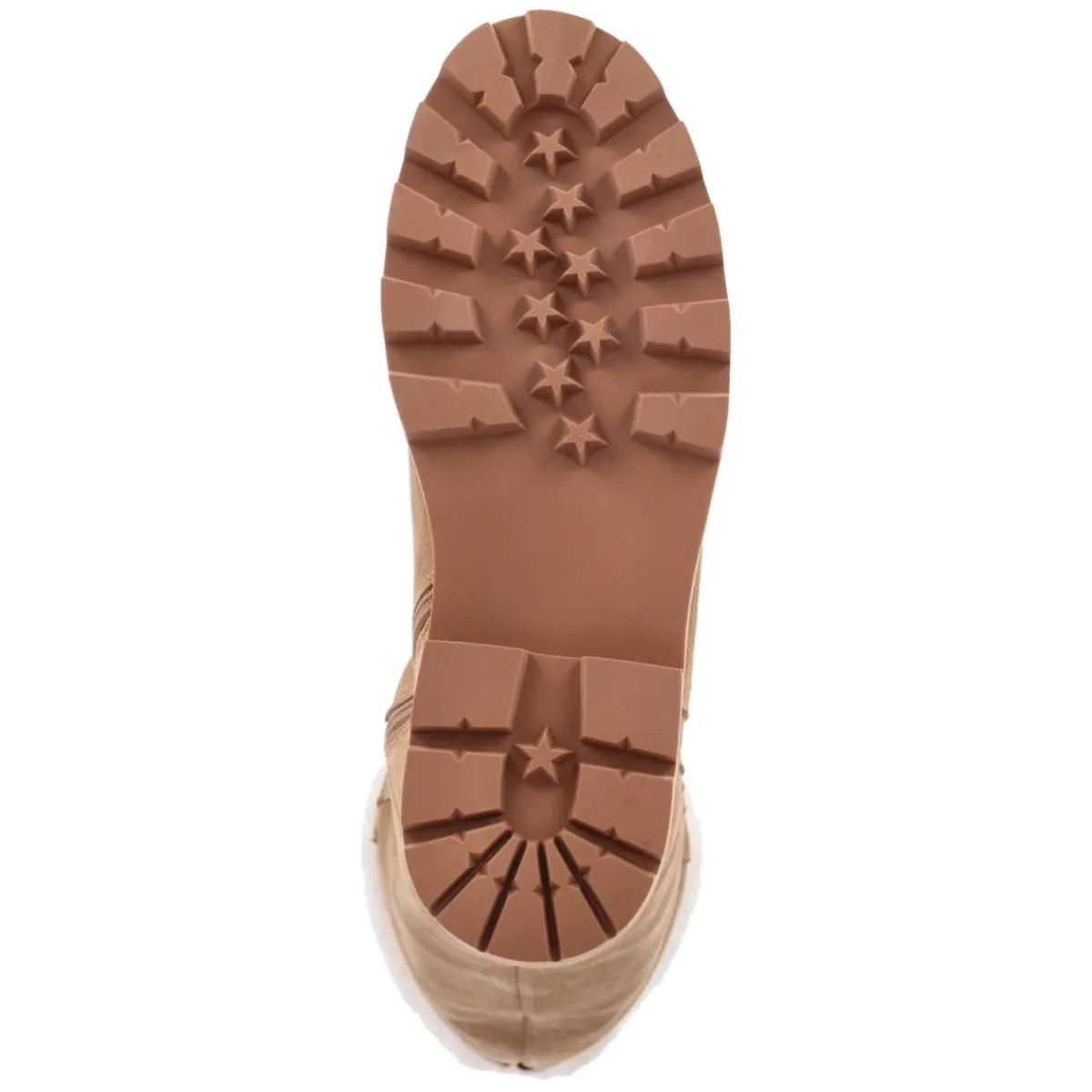 Der Winterstiefel TITAN von Australia Luxe verbindet luxuriöse Wärme und robuste Alltagstauglichkeit. Weiches, langlebiges Echtleder aus braunem Rauleder formt den hohen Schaft (ca. 43 cm Höhe, 34 cm Umfang) mit natürlichem Design, runder Spitze und verstärkter Ferse samt edlem Metall-Label. Innen sorgt warmes Lammfellfutter für wohlige Isolation, ergänzt durch eine textilbezogene Decksohle mit komfortablem Fersenpolster. Ein gepolsterter Einstieg in Teddyoptik schmiegt sich angenehm an, während der praktische Reißverschluss das An- und Ausziehen erleichtert. Die rutschfeste Profilsohle liefert Halt auf winterlichen Wegen. Der Passformhinweis fällt normal aus und macht den Stiefel zur verlässlichen Wahl für Damen im Alltag. Modetipp: zu Midi-Strickkleid und langem Wollmantel in Ton-in-Ton-Braun, kombiniert mit groben Rippstrümpfen.