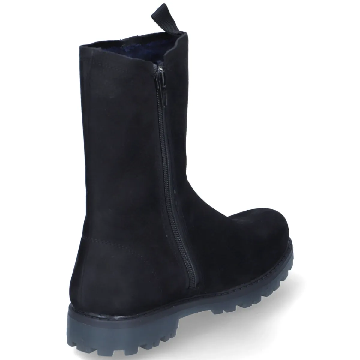 Die Winterstiefeletten NENA von Vado verbinden funktionales Design mit urbanem Look. Schwarzes Rauleder und eine runde Schuhspitze sorgen für zeitlosen Stil, während das VA-TEX-Laminat die Füße zuverlässig wasserfest schützt und zugleich atmungsaktiv bleibt. Ein leichtes, warmes Futter wärmt an kühlen Tagen, ohne aufzutragen. Der bequeme Reißverschlußeinstieg mit zwei Anziehlaschen erleichtert das Hineinschlüpfen, die gepolsterte, wechselbare Textildecksohle erhöht den Tragekomfort im Alltag. Für Halt auf nassen Wegen sorgt die robuste, rutschhemmende Profilsohle; ein stabiler Blockabsatz und der verstärkte Fersenbereich geben zusätzliche Stabilität. Das Modell fällt größengetreu aus und ist ideal für aktive Kinder und Jugendliche. Modetipp: In Kombination mit dunklen Skinny-Jeans, grob gestrickten Socken und einer gesteppten Pufferjacke entsteht ein lässiger Winter-Look.