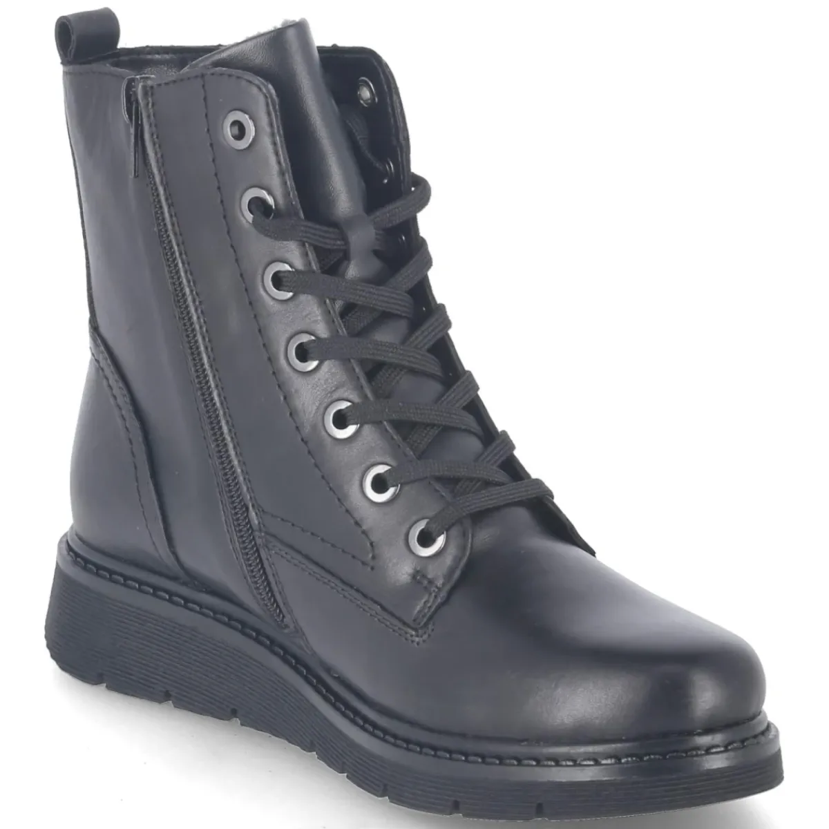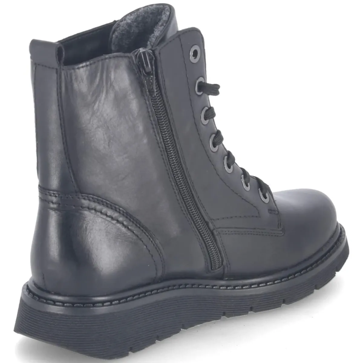 Der Remonte Schnürboot in klassischem Schwarz verbindet robuste Alltagstauglichkeit mit femininer Linienführung. Glattes Leder sorgt für eine wertige Optik, der runde Leisten bietet Zehenfreiheit. Dank wasserfester Ausstattung und wasserabweisender Oberfläche bleibt der Fuß auch bei wechselhaftem Wetter geschützt, während atmungsaktive Materialien für ein ausgeglichenes Klima sorgen. Warmfutter umhüllt angenehm an kalten Tagen, die flexible, rutschfeste Laufsohle gibt verlässlichen Halt. Schnürung und seitlicher Reißverschluss ermöglichen unkompliziertes An- und Ausziehen, eine Anziehlasche unterstützt zusätzlich. Der verstärkte Fersenbereich stabilisiert, das wechselbare Fußbett lässt Raum für eigene Einlagen. Größentreu im Sitz und vielseitig kombinierbar, wird der Boot zum verlässlichen Begleiter im Winteralltag. Modetipp: Mit Strickkleid, blickdichter Strumpfhose und Oversize-Wollmantel entsteht ein eleganter City-Look.