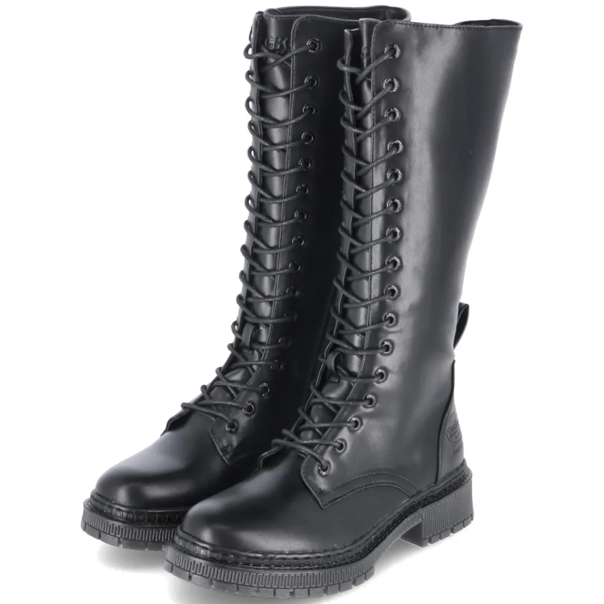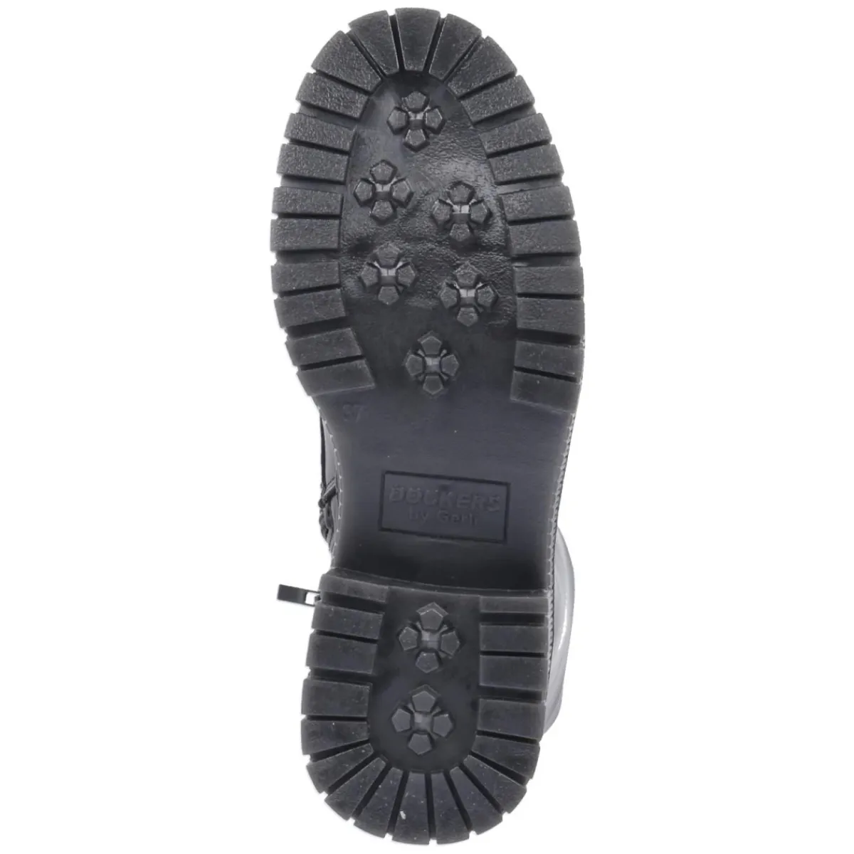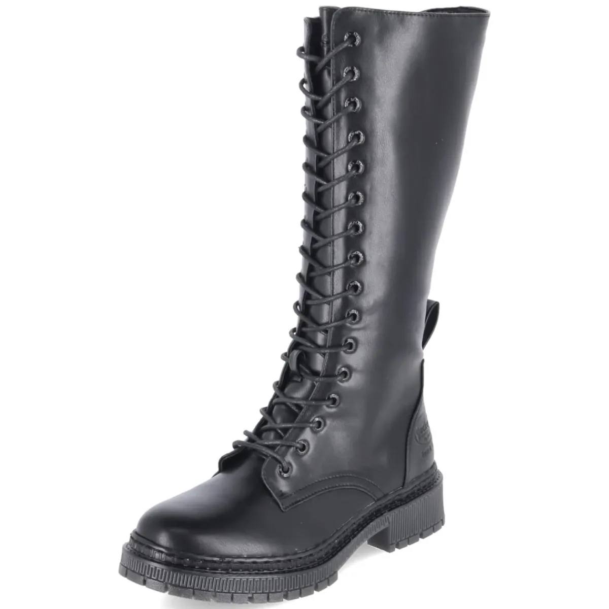 Der schwarze Dockers Schnürstiefel vereint lässige Robustheit mit komfortablen Details. Der 4 cm hohe Blockabsatz sorgt für einen stabilen Auftritt, während der Schaft mit ca. 31 cm Höhe und etwa 36 cm Umfang eine schmeichelnde Silhouette bietet. Das pflegeleichte Synthetik-Obermaterial präsentiert sich unempfindlich im Alltag, die Synthetik-Decksohle und das weich gepolsterte Fußbett erhöhen den Tragekomfort. Schnürung und seitlicher Reißverschluss ermöglichen einen unkomplizierten Einstieg sowie eine präzise Anpassung. Eine rutschfeste Profilsohle gibt Halt, der verstärkte Fersenbereich und die Anziehlasche erhöhen die Langlebigkeit. Die runde Spitze und die normal ausfallende Passform machen den Stiefel vielseitig kombinierbar. Modetipp: Mit Strickkleid, blickdichter Strumpfhose und Oversize-Mantel entsteht ein moderner Kontrast aus Femininität und Utility-Charme.