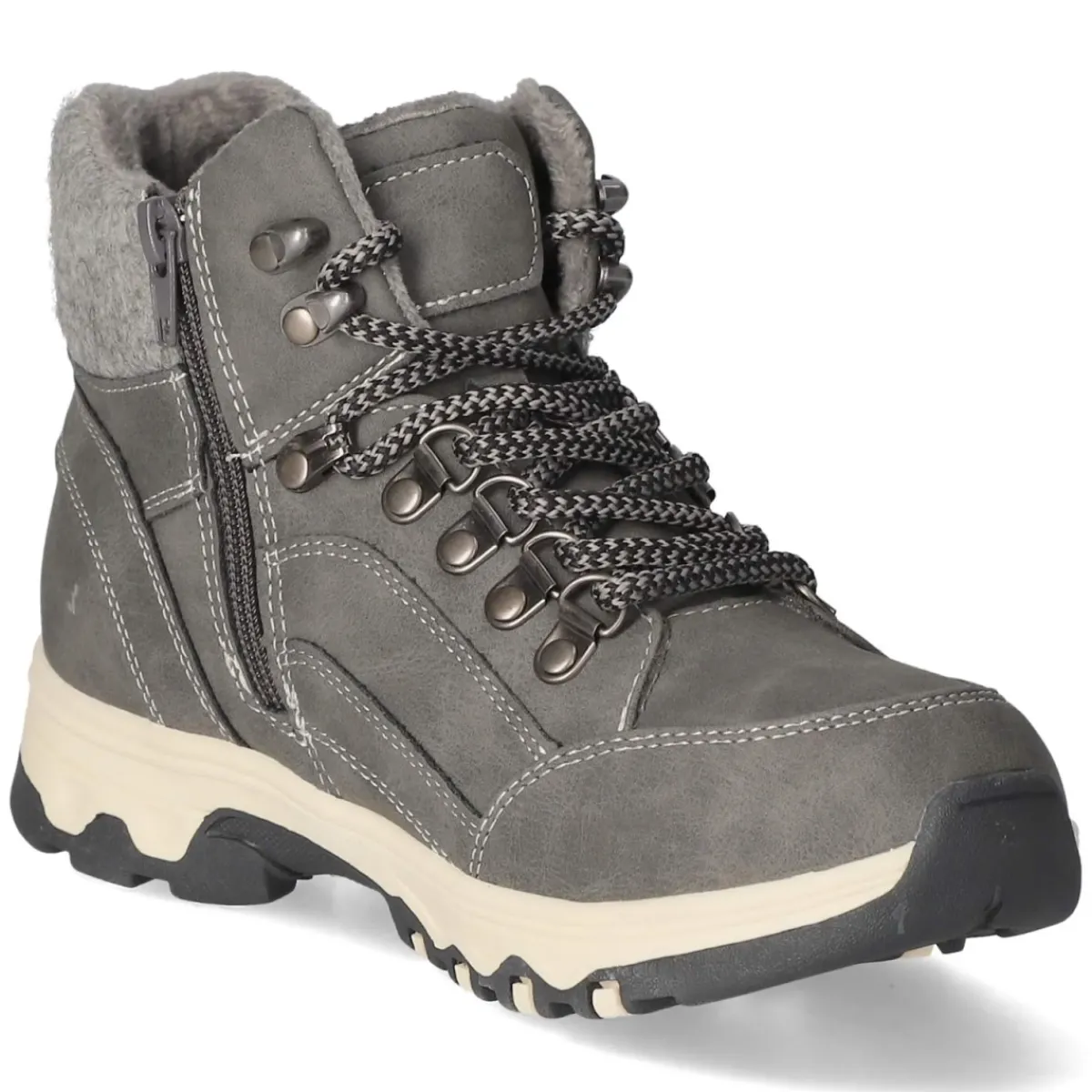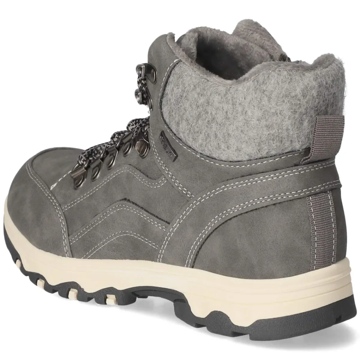 Die Schnürstiefeletten von Jane Klain vereinen urbane Lässigkeit mit funktionalem Komfort. Der robuste Mix aus Textil und Synthetik wirkt dank grauer Farbgebung besonders vielseitig, während die wasserabweisende TEX-Ausstattung und das leichte Warmfutter an kühlen Tagen angenehm schützen. Eine runde Schuhspitze und der in Filzoptik gehaltene Schaftrand sorgen für einen soften Look, der durch die Anziehhilfe praktisch ergänzt wird. Langes Schnüren entfällt dank Reißverschluss, die Schnürung ermöglicht dennoch individuelle Anpassung. Das Wechselfußbett unterstützt unterschiedliche Einlagenbedürfnisse, die flexible, rutschfeste Profilsohle gibt sicheren Halt. Verstärkte Zehen- und Fersenbereiche erhöhen die Langlebigkeit, der Größeneindruck fällt normal aus. Modetipp: Zu Mom-Jeans, kuscheligem Strickpullover und einem Oversize-Wollmantel kombinieren oder als spannender Kontrast zum Midi-Strickkleid mit blickdichter Strumpfhose tragen.