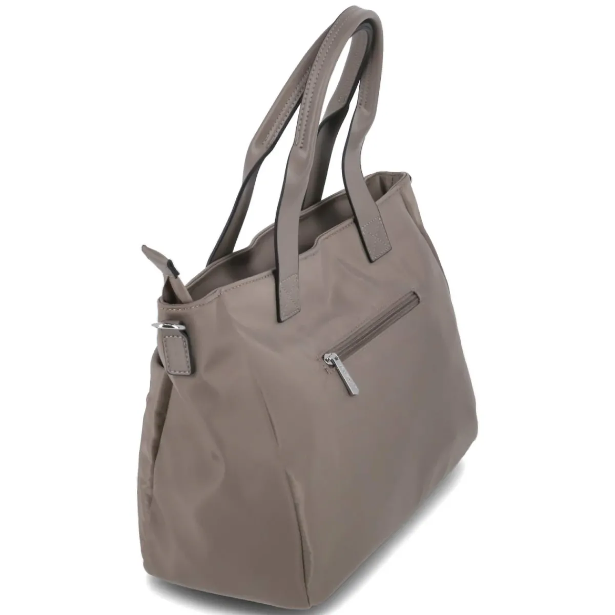 Zeitlose Eleganz trifft durchdachte Funktion: Diese Umhängetasche in Taupe überzeugt mit klarer Form und fein strukturierter Oberfläche. Das Format von ca. 24 x 32 x 15 cm bietet rund 10 Liter Fassungsvermögen – ausreichend für Tablet, Notizbuch, Geldbörse und eine kleine Trinkflasche. Ein sicherer Reißverschluss schließt das Hauptfach, während ein verstärkter Boden Stabilität und Standfestigkeit verleiht. Ordnung schaffen zwei vordere Steckfächer mit Magnetverschluss sowie zwei kleine Reißverschlussfächer, dazu kommen ein rückseitiges Reißverschlussfach, innen ein weiteres Reißverschlussfach und zwei Steckfächer. Der verstellbare, abnehmbare Schultergurt (ca. 130 cm) erlaubt das Tragen entspannt über der Schulter oder quer. Modetipp: Zu sandfarbenem Trenchcoat, cremefarbenem Strick und Loafern getragen entsteht ein harmonischer, moderner City-Look.