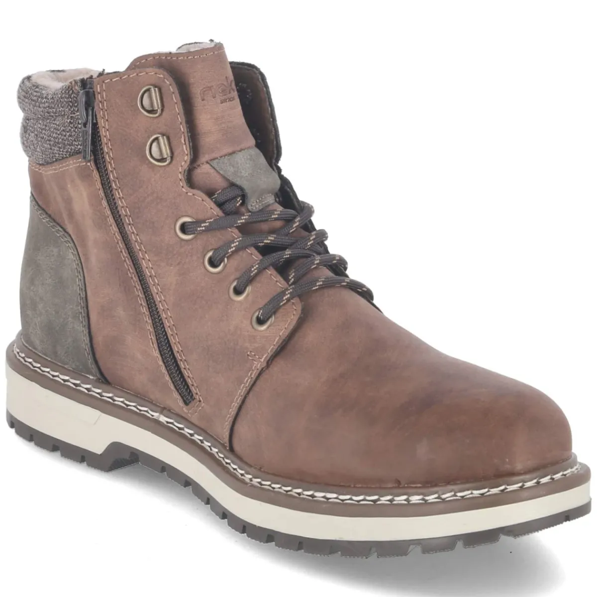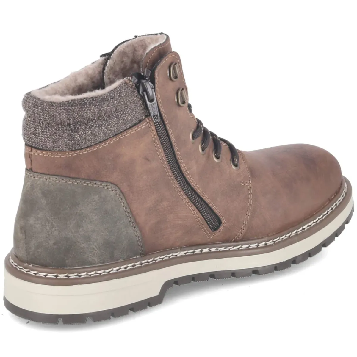 Robust im Auftritt und komfortorientiert im Detail: Der Herren-Winterboot von Rieker zeigt sich in natürlichem Braun und kommt mit wettertauglichem Kunstleder, das wasserfest verarbeitet ist. Warmfutter bewahrt angenehme Wärme, während die atmungsaktive Konstruktion ein ausgeglichenes Fußklima fördert. Eine weiche, textile Decksohle sorgt für spürbares Fußwohl, der gepolsterte Einstieg erhöht den Tragekomfort auf langen Wegen. Schnürsenkel und seitlicher Reißverschluss ermöglichen schnelles Anziehen und einen passgenauen Sitz, die runde Spitze bietet Zehenfreiheit. Die flexible, rutschfeste Laufsohle und die verstärkte Ferse geben verlässlichen Halt auf winterlichen Untergründen. Der Schnitt fällt normal aus und begleitet mühelos Alltag und Freizeit. Modetipp: Harmoniert besonders mit Raw-Denim, grobem Strick und einem schlichten Parka in Oliv oder Navy.