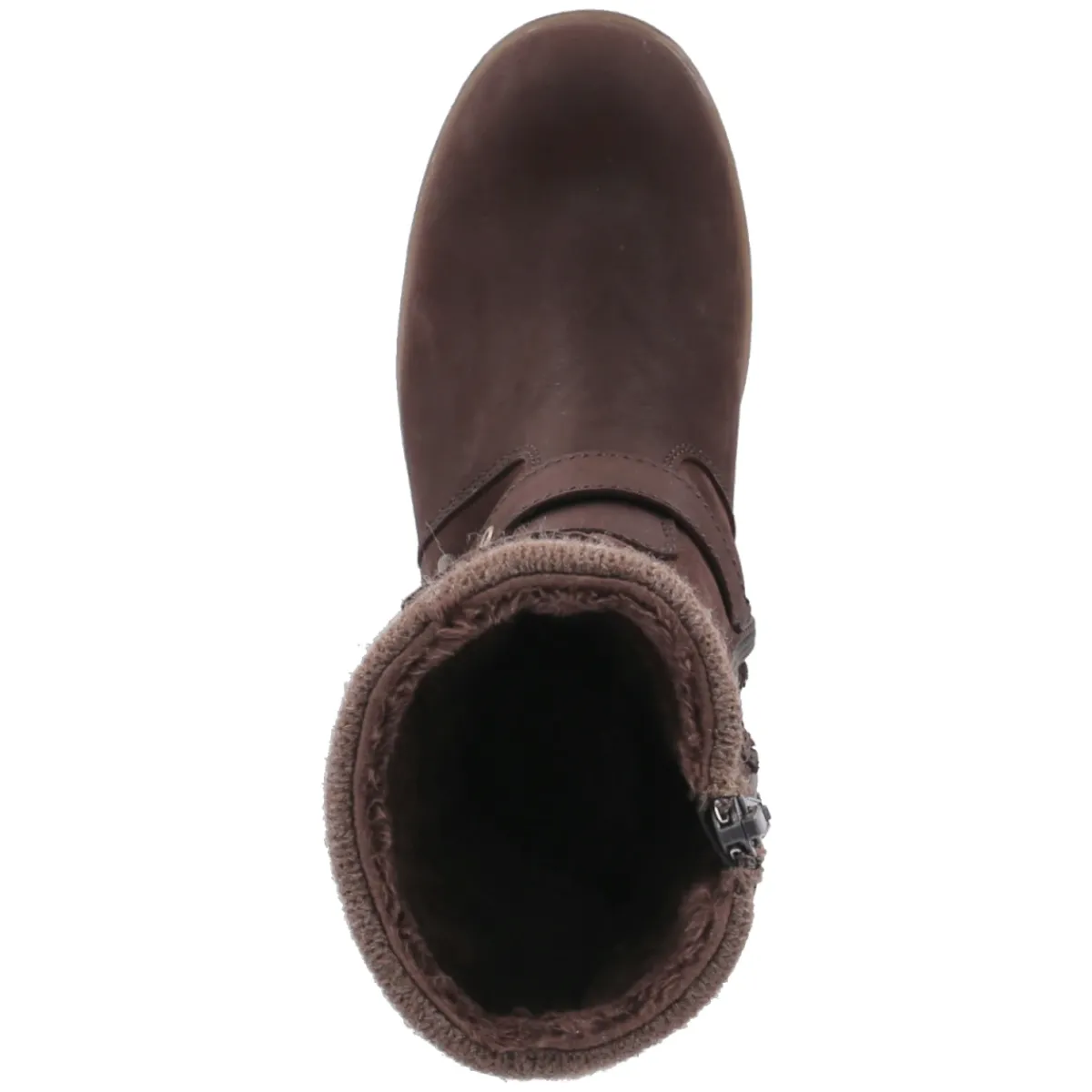 Der Winterstiefel von Däumling verbindet robuste Funktion mit kindgerechtem Komfort. Braunes Rauleder trifft auf ein warmes Fleecefutter, das an kalten Tagen zuverlässig wärmt. Dank wasserfester Verarbeitung und atmungsaktivem Aufbau bleibt das Fußklima ausgewogen, während eine wasserabweisende Oberfläche Nässe zuverlässig abhält. Der seitliche Reißverschlusseinstieg erleichtert das An- und Ausziehen, der Einstieg mit Strick schmiegt sich weich an den Knöchel. Ein 3 cm hoher Blockabsatz gibt Stabilität, die flexible, rutschhemmende Laufsohle sorgt für sicheren Tritt. Runde Schuhspitze, verstärkte Ferse und Wechselfußbett bieten Bewegungsfreiheit und praktische Pflege. Zierschnallen setzen einen dezenten Akzent, die Passform fällt normal aus. Modetipp: Mit Thermojeans, Karamell-Parka und cremefarbener Strickmütze entsteht ein stimmiger Ton-in-Ton-Look; gemusterte Wollsocken leicht über dem Strickrand zeigen.