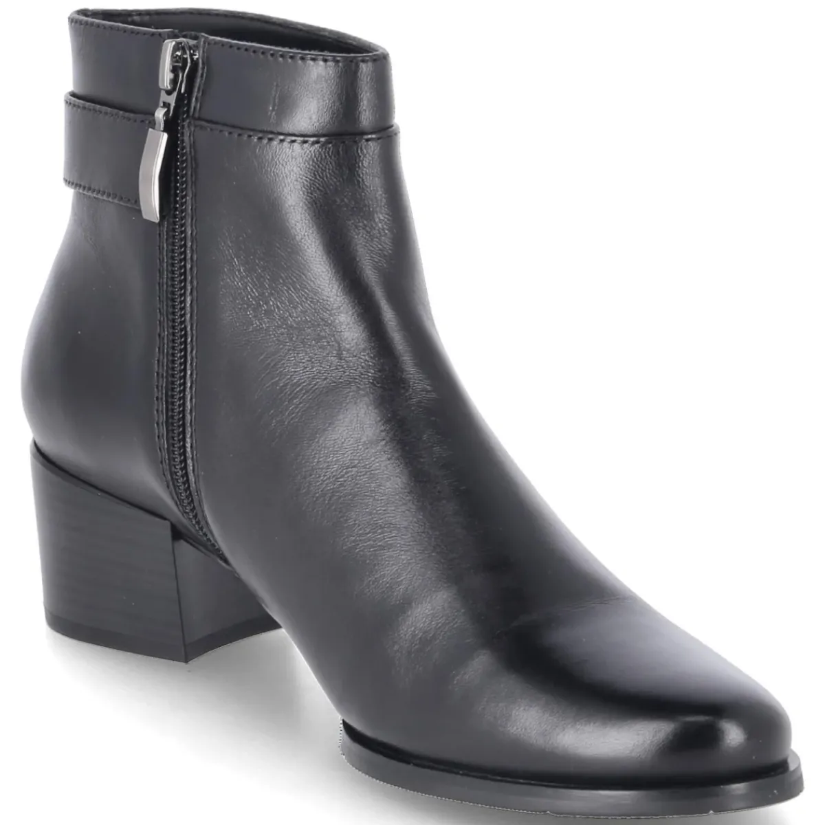 Der Ankle Boot von Kaerlek setzt auf zeitlose Eleganz und zuverlässigen Komfort. Feines Glattleder in tiefem Schwarz, eine runde Vorderkappe und der stabile Blockabsatz in Holzoptik (5 cm) formen eine feminine Silhouette, die sowohl im Büro als auch am Abend überzeugt. Das leichte Fleecefutter hält an kühleren Tagen angenehm warm, während das komfortable Wechselfußbett in Kombination mit der textilen Decksohle für ein weiches Tragegefühl sorgt. Ein seitlicher Reißverschluss ermöglicht einen schnellen Einstieg, die Zierschnalle in Titanoptik am Knöchel verleiht einen edlen Akzent. Die Passform fällt größengetreu aus und unterstützt einen sicheren Auftritt. Modetipp: Mit cropped Straight-Jeans und strukturiertem Wollmantel entsteht ein moderner City-Look, alternativ ergänzt ein Midirock mit blickdichten Strümpfen eine elegante, herbstliche Note.