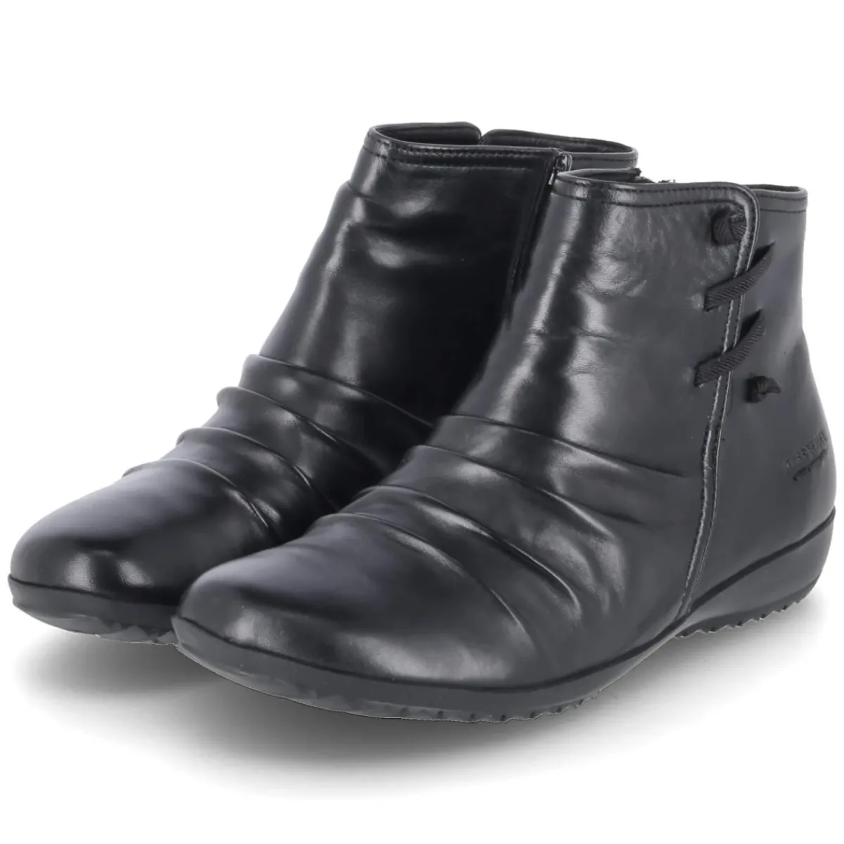 Der Ankle Boot NALY 12 von Josef Seibel vereint zeitloses Design und verlässlichen Komfort. Schwarzes Glattleder verleiht dem Modell eine klare Linie, der sanfte Faltenwurf über dem Spann setzt einen dezenten Akzent. Der seitliche Reißverschluss mit stretchigem Band sorgt für einen bequemen Einstieg und eine angenehme Anpassung am Fuß. Die weiche Decksohle aus Textil schmiegt sich an und macht selbst längere Wege leicht, während die flexible, griffige Laufsohle bei wechselhaften Untergründen sicheren Halt bietet. Das geringe Gewicht und die runde Schuhspitze unterstützen ein entspanntes Tragegefühl im Alltag. Die Passform fällt normal aus und eignet sich damit unkompliziert für viele Anlässe, vom Büro bis zum Stadtbummel. Modetipp: Zu geraden Dark-Denim-Jeans und einem strukturierten Wollmantel entsteht ein cleaner Look, der die puristische Silhouette der Boots betont.