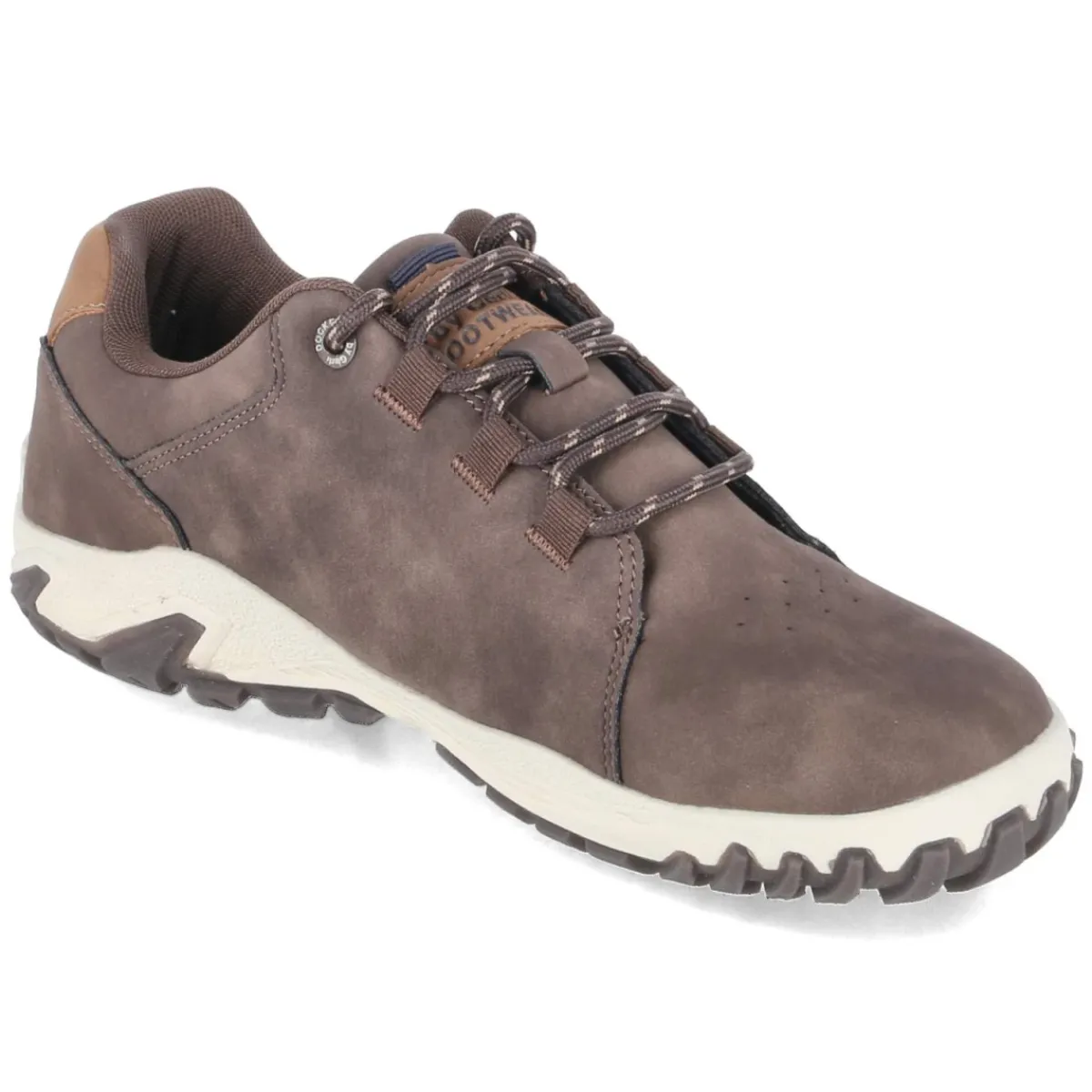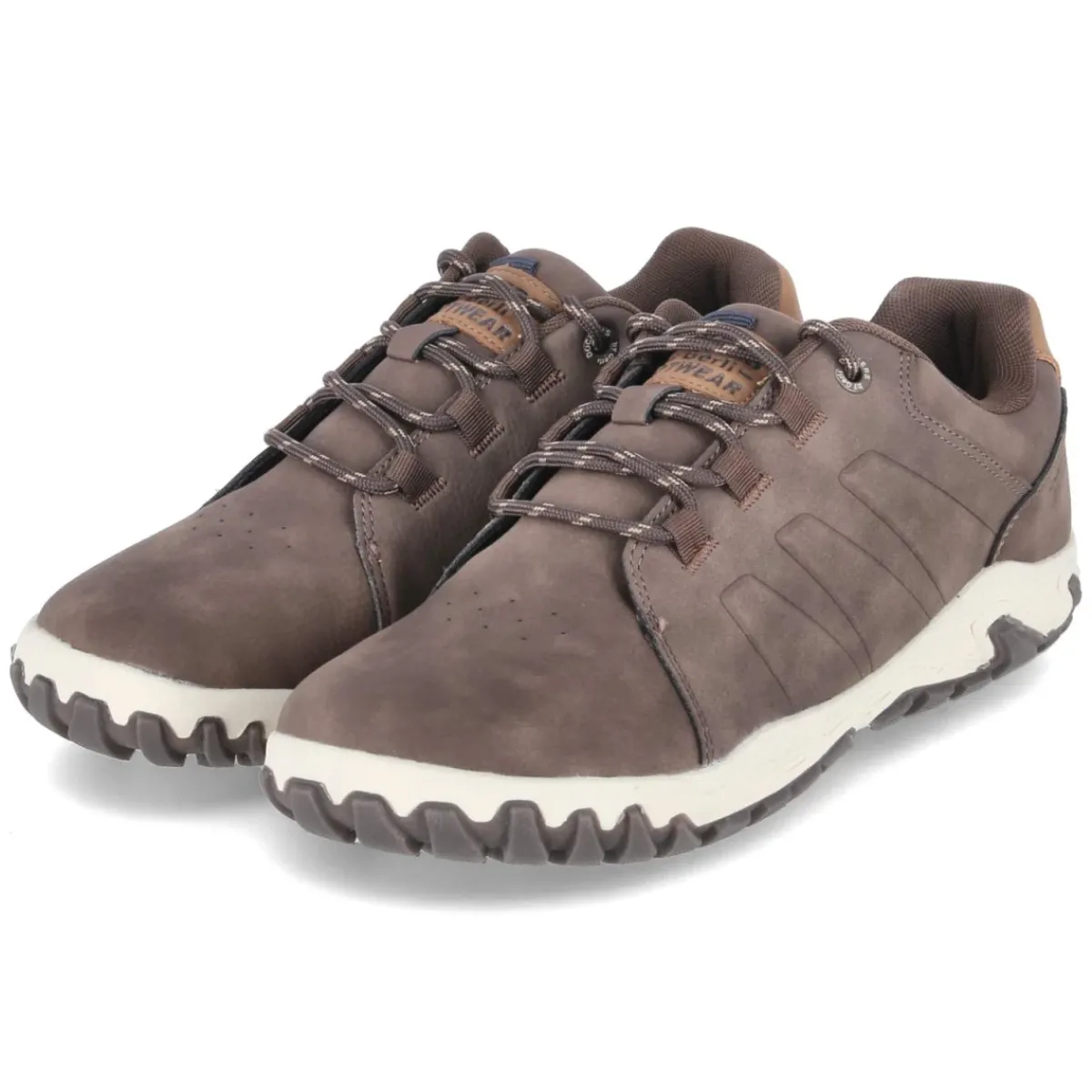 Der Dockers Barfußschuh für Herren verbindet natürliches Gehgefühl mit urbaner Lässigkeit. Die sehr flexible, rutschfeste Laufsohle unterstützt eine freie Abrollbewegung, während der verstärkte Fersenbereich Stabilität verleiht. Ein gepolsterter Einstieg und die runde Schuhspitze erhöhen den Komfort im Alltag. Das synthetische Obermaterial zeigt sich pflegeleicht und robust, die sportliche Seitenprägung setzt einen dezenten Akzent. Das komfortable Wechselfußbett lässt sich bei Bedarf gegen eigene Einlagen tauschen; die Decksohle aus Textil sorgt für ein angenehmes Klima. Mit klassischem Schnürverschluss lässt sich der braune Schuh präzise anpassen und fällt in der Größe normal aus. Modetipp: Zu einer schmalen Chino in Sand und einem leichten Strickpullover entsteht ein entspannter City-Look, der den minimalistischen Charakter des Barfußschuhs betont.