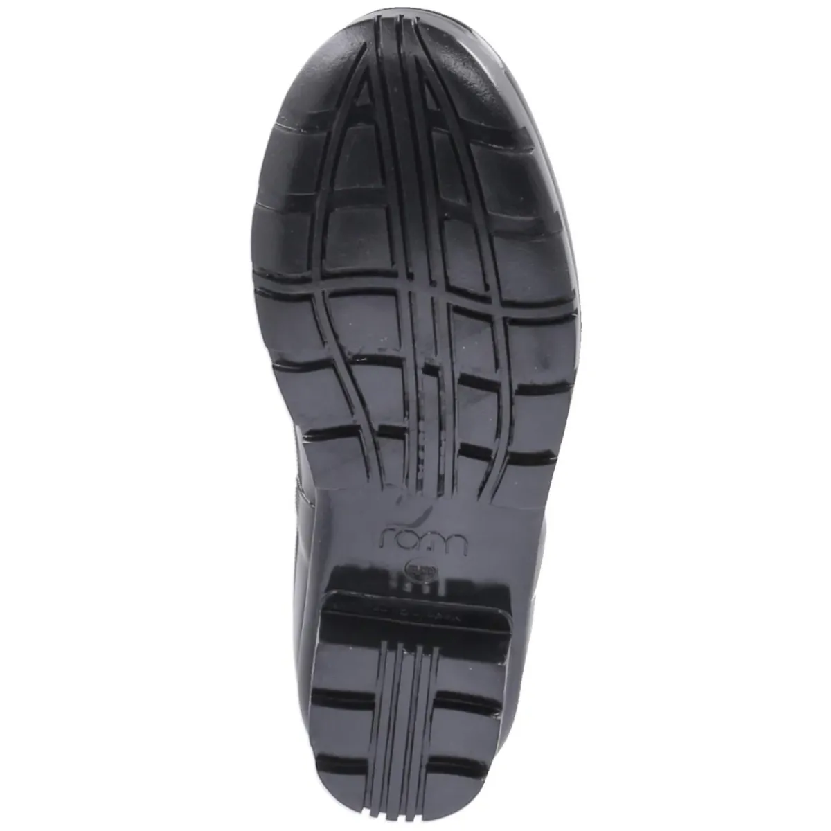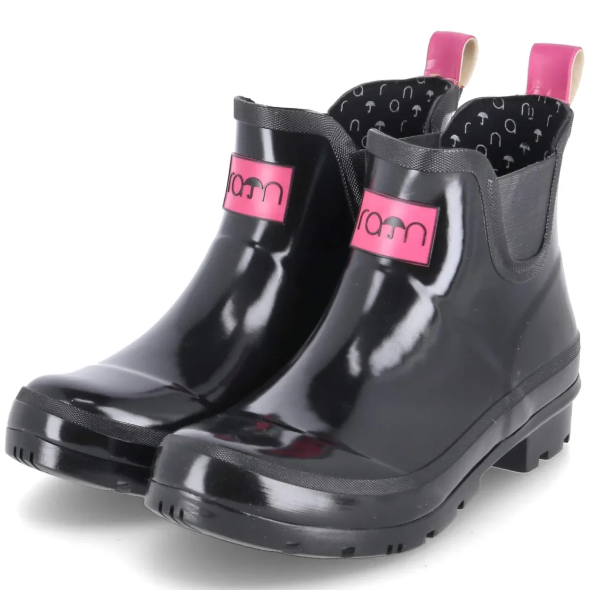 Der Chelsea Boots GLOSSY von Rajn verbindet urbanen Chic mit wetterfestem Komfort. Das Obermaterial aus schwarzem Gummi zeigt eine markante Lackoptik, seitliche Elastikeinsätze und eine praktische Anziehlasche sorgen für einen unkomplizierten Einstieg. Die runde Schuhspitze und der 3 cm hohe Blockabsatz bieten entspanntes Auftreten, während der verstärkte Fußrahmen und die verstärkte Ferse mit Reflektorstreifen Stabilität und Sichtbarkeit im Straßenalltag erhöhen. Die flexible, rutschhemmende Profilsohle gibt Halt auf nassem Untergrund. Innen verwöhnt eine textile Decksohle, dazu kommt ein gepolstertes, herausnehmbares Wechselfußbett, das bei Bedarf durch eigene Einlagen ersetzt werden kann. Die pflegeleichte Oberfläche lässt sich leicht reinigen und das Modell fällt größengetreu aus. Modetipp: Zur Cropped-Jeans und Oversize-Trench kombinieren oder mit Midirock und feinen Socken die rosa Details elegant aufgreifen.