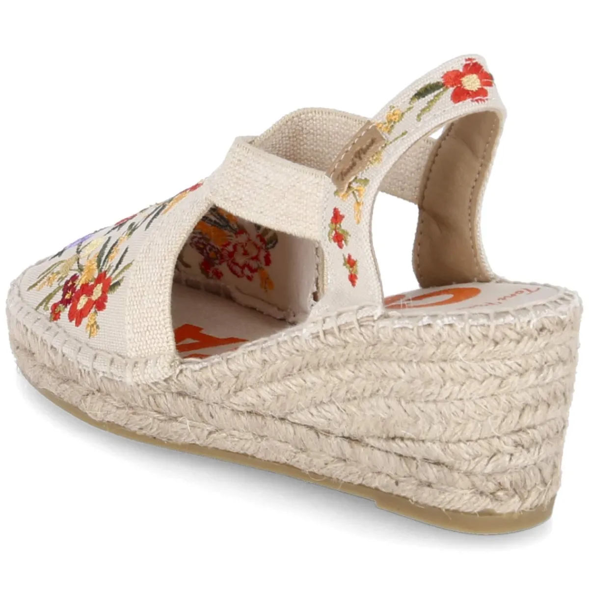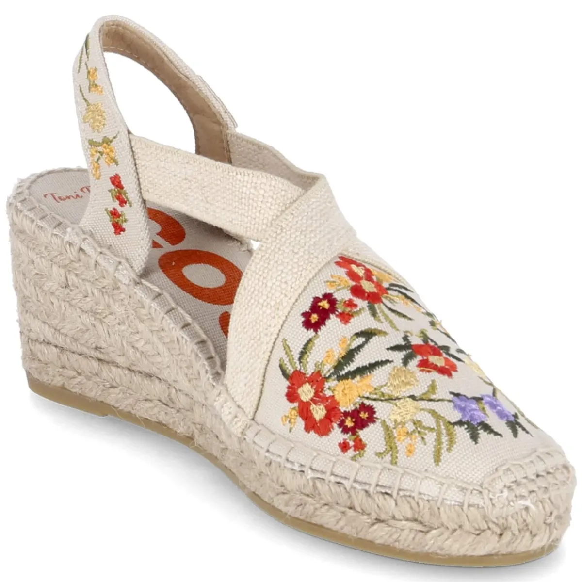 Die Keilsandaletten MONTJOI von Toni Pons vereinen mediterranes Flair mit alltagstauglichem Komfort. Das beige Textilobermaterial wirkt durch farbenfrohe Blumenstickerei lebendig und verleiht jedem Outfit einen sympathischen Touch. Gekreuzte, elastische Riemen schmiegen sich angenehm an den Spann und halten sicher, während der 6,5 cm hohe Keilabsatz für eine feminine Silhouette und entspanntes Gehen sorgt. Die weiche Decksohle aus Textil und die rutschfeste Laufsohle begleiten zuverlässig durch Stadt und Urlaubspromenade. Der geflochtene Sohlenrahmen zitiert den Espadrille-Look, die runde Spitze erhöht den Tragekomfort. Ohne Verschluss und mit normaler Passform gestaltet sich das Reinschlüpfen unkompliziert. Modetipp: Besonders stimmig zu Leinen-Midikleidern oder einer Denim-Culotte, dazu Korbtasche und zarte Schmuckdetails.