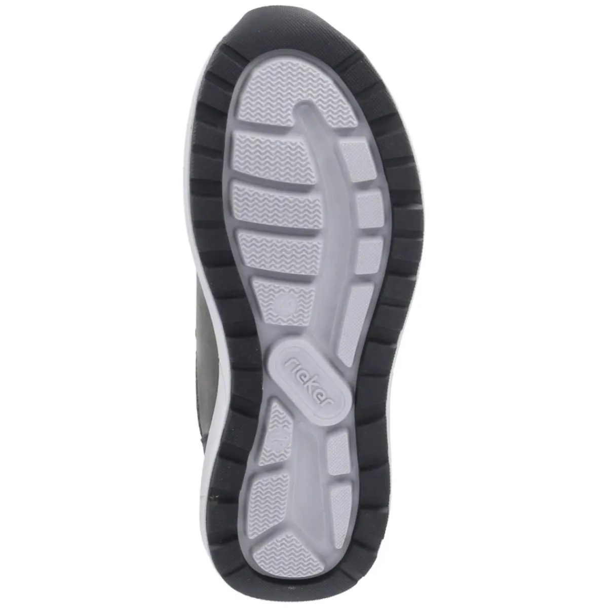 Der Herren-Halbschuh von Rieker in frischem Grün verbindet sportliche Optik mit praxisnahen Details für den Alltag. Das pflegeleichte Synthetik-Obermaterial lässt sich unkompliziert säubern und behält lange seine Form. Schnürsenkel und seitlicher Reißverschluss bieten eine Kombination aus passgenauer Fixierung und schnellem Einstieg, unterstützt von Anziehlasche und gepolstertem Schaftrand. Der runde Leisten schafft Zehenfreiheit, während der verstärkte Fersen- und Zehenbereich Stabilität gibt. Die flexible, griffige Laufsohle sorgt für zuverlässigen Halt auf unterschiedlichen Untergründen und ein dynamisches Abrollen. Innen liegt eine textile Decksohle auf einem gepolsterten, herausnehmbaren Fußbett, das sich bei Bedarf gegen eigene Einlagen tauschen lässt. Passformhinweis: fällt normal aus. Modetipp: mit dunkelgrauer Chino, leichtem Hoodie und Utility-Jacket einen smart-sportiven City-Look setzen.