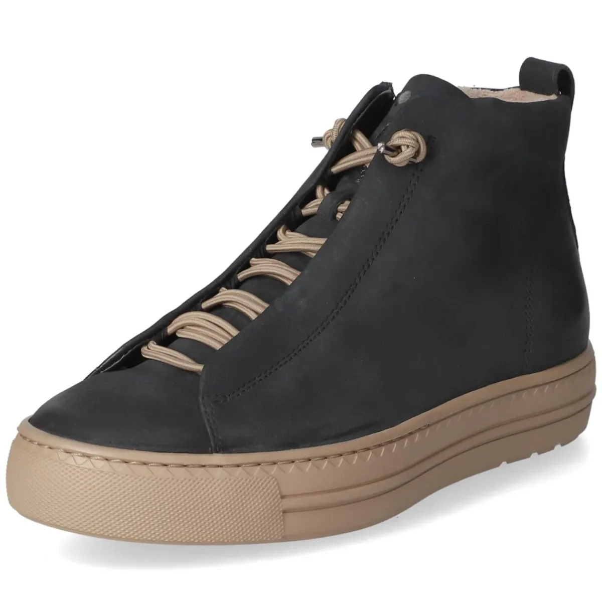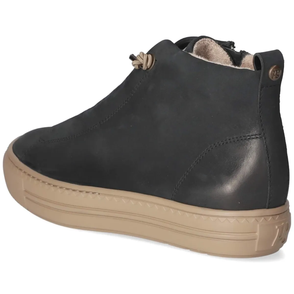 Der High Sneaker von Paul Green verbindet sportliche Höhe mit eleganter Linienführung in sanftem Blau. Weiches Rauleder sorgt zusammen mit der Lederdecksohle für ein atmungsaktives Tragegefühl, während das leichte Futter angenehme Wärme an kühlen Tagen liefert. Die Kombination aus Schnürung und Reißverschluss ermöglicht schnelles An- und Ausziehen; ein zusätzlicher Zipper erhöht den Komfort im Alltag. Der runde Leisten schafft Bewegungsfreiheit, die verstärkte Ferse stabilisiert unauffällig. Eine flexible, rutschhemmende Laufsohle bietet sicheren Halt auf urbanen Wegen. Das Markenemblem setzt einen dezenten Akzent, die Anziehhilfe erleichtert den Start in den Tag. Dank normaler Passform fällt das Modell größengetreu aus und begleitet mühelos Büro, City und Wochenendpläne. Modetipp: Zu Cropped-Jeans in Dunkelgrau und einem cremefarbenen Wollmantel entsteht ein lässig-edler Look; farblich abgestimmte Socken betonen die High-Silhouette wirkungsvoll.