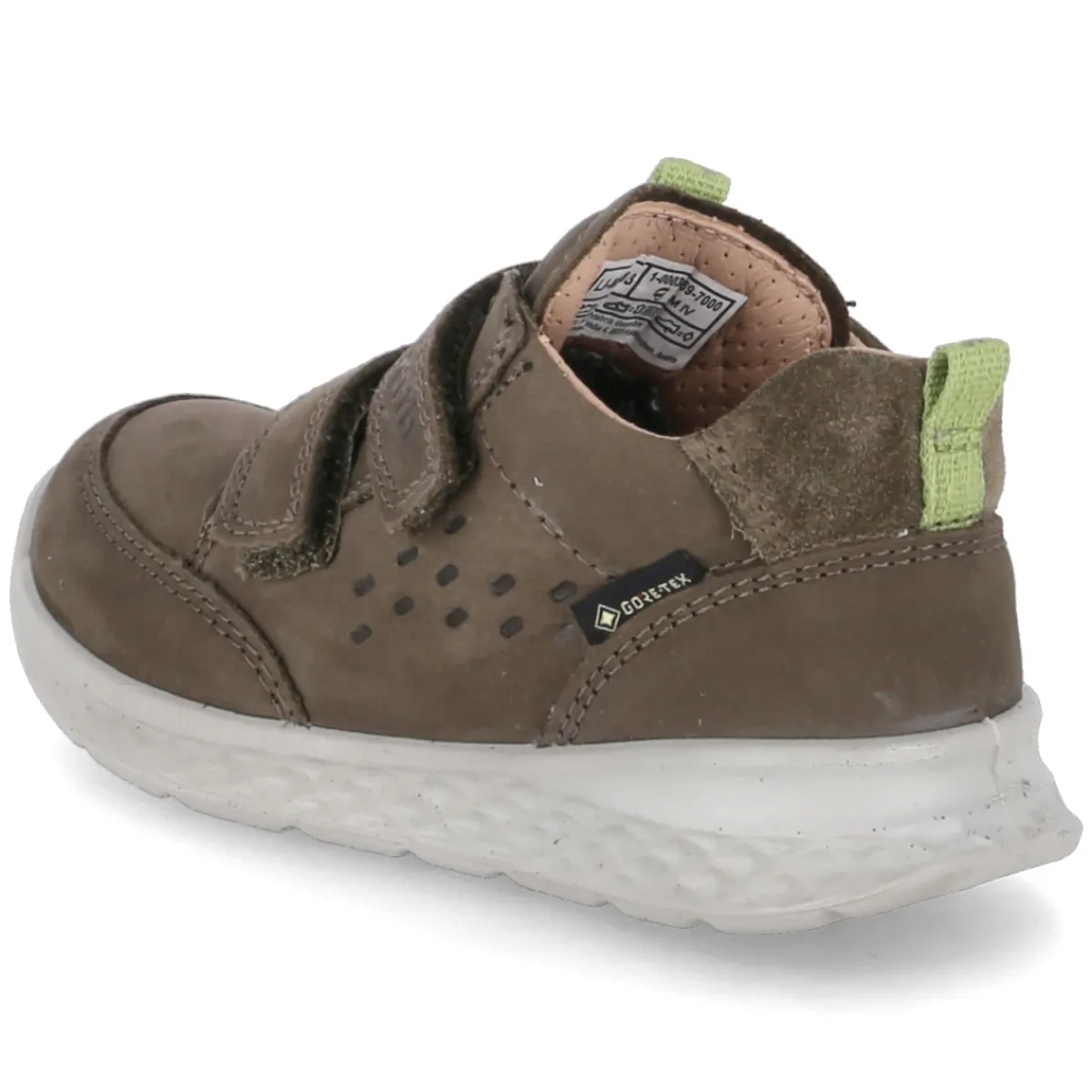 Der Superfit Klettschuh BREEZE in frischem Grün verbindet kindgerechten Komfort mit robuster Alltagstauglichkeit. Aus weichem Nubuk mit feinem Prägemuster gefertigt, bietet das Modell eine runde Spitzenform und fällt in der Größe normal aus. Der verstärkte Zehen- und Fersenbereich schützt kleine Füße bei jedem Abenteuer, während der leicht gepolsterte Einstieg und zwei Anziehlaschen das Hineinschlüpfen erleichtern. Zwei Klettverschlüsse sorgen für passgenauen Halt. Dank wasserfester und atmungsaktiver Ausstattung bleiben Füße selbst bei wechselhaftem Wetter angenehm trocken. Die hautfreundliche, gepolsterte und herausnehmbare Leder-Decksohle dient als Wechselfußbett und kann bei Bedarf unkompliziert getauscht werden. Eine rutschhemmende Profilsohle gibt sicheren Grip auf verschiedenen Untergründen – ideal für Kleinkinder in Bewegung. Modetipp: Perfekt zu Jersey-Shorts, Stricksocken und einer leichten Softshelljacke in Naturtönen.