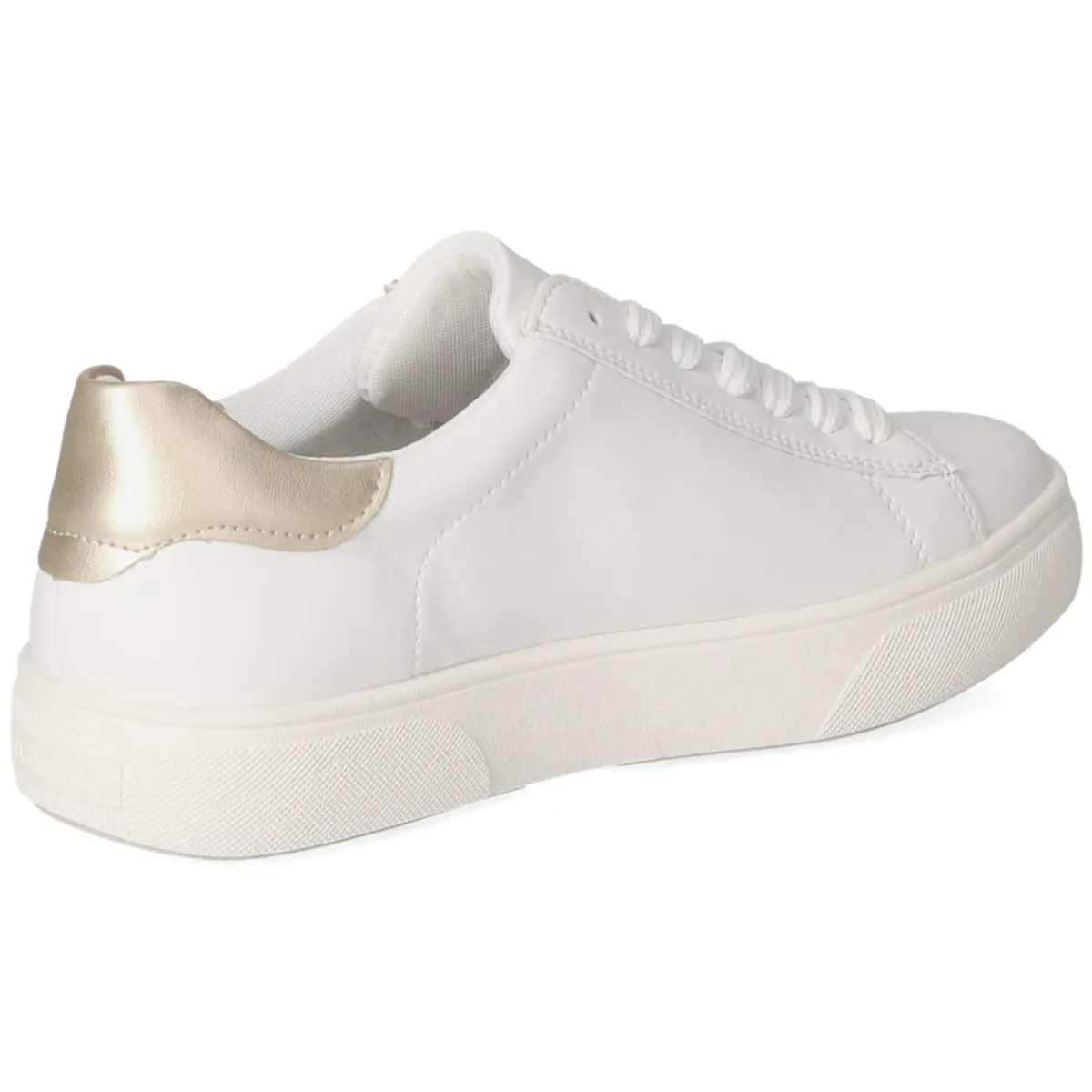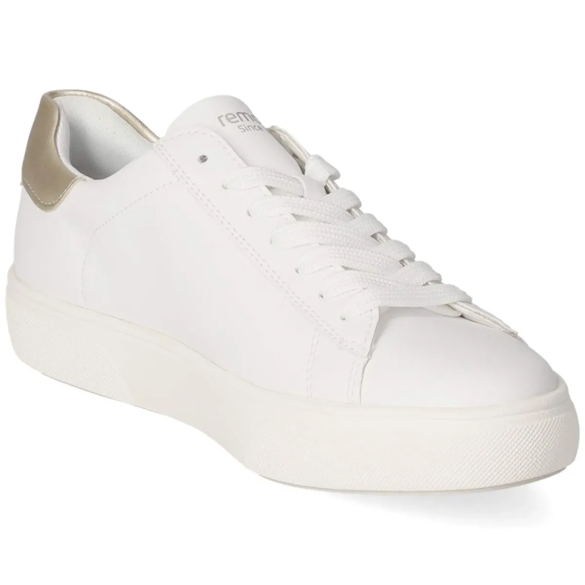 Der Low Sneaker von Remonte vereint zeitlosen Look und hohen Komfort. Das Obermaterial aus atmungsaktivem Echtleder in glatter Ausführung präsentiert sich in klarem Weiß, akzentuiert von goldfarbenem Markenschriftzug und dezent metallischem Print. Die runde Schuhspitze und das sportliche Design sorgen für eine moderne Silhouette, während der bequem gepolsterte Einstieg, die verstärkte Ferse und die flexible, rutschfeste Sohle entspanntes Gehen unterstützen. Das gepolsterte Wechselfußbett mit textiler Decksohle lässt sich im Handumdrehen anpassen oder austauschen. Klassische Schnürsenkel erlauben individuellen Halt, die Passform fällt normal aus und passt so verlässlich zu gängigen Größen. Modetipp: Zu Cropped-Jeans und einem hellen Stricktop entsteht ein frischer Alltagslook; mit einem fließenden Midirock und feinem Schmuck wird der Sneaker zum eleganten Kontrastgeber.