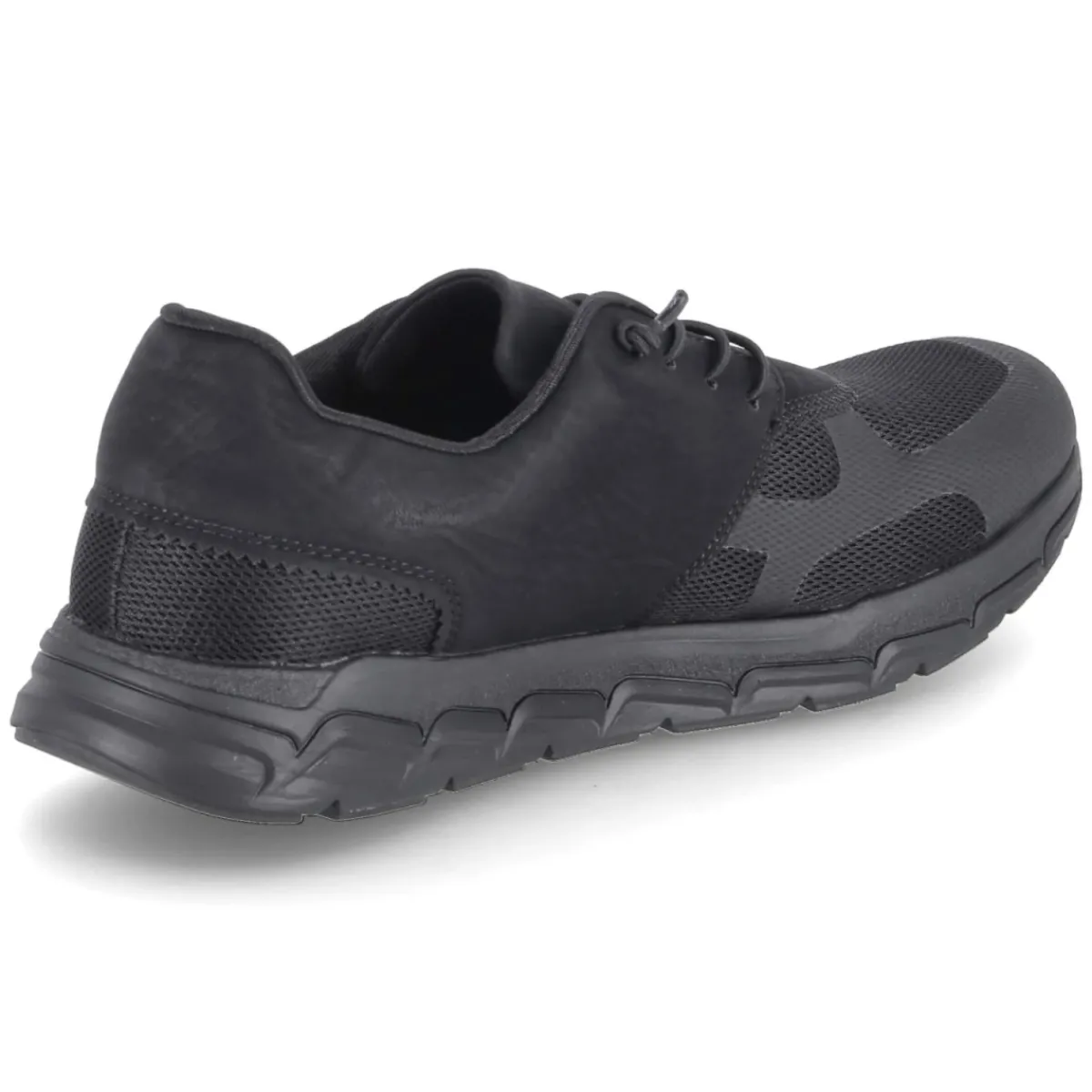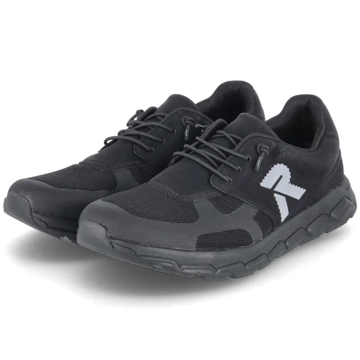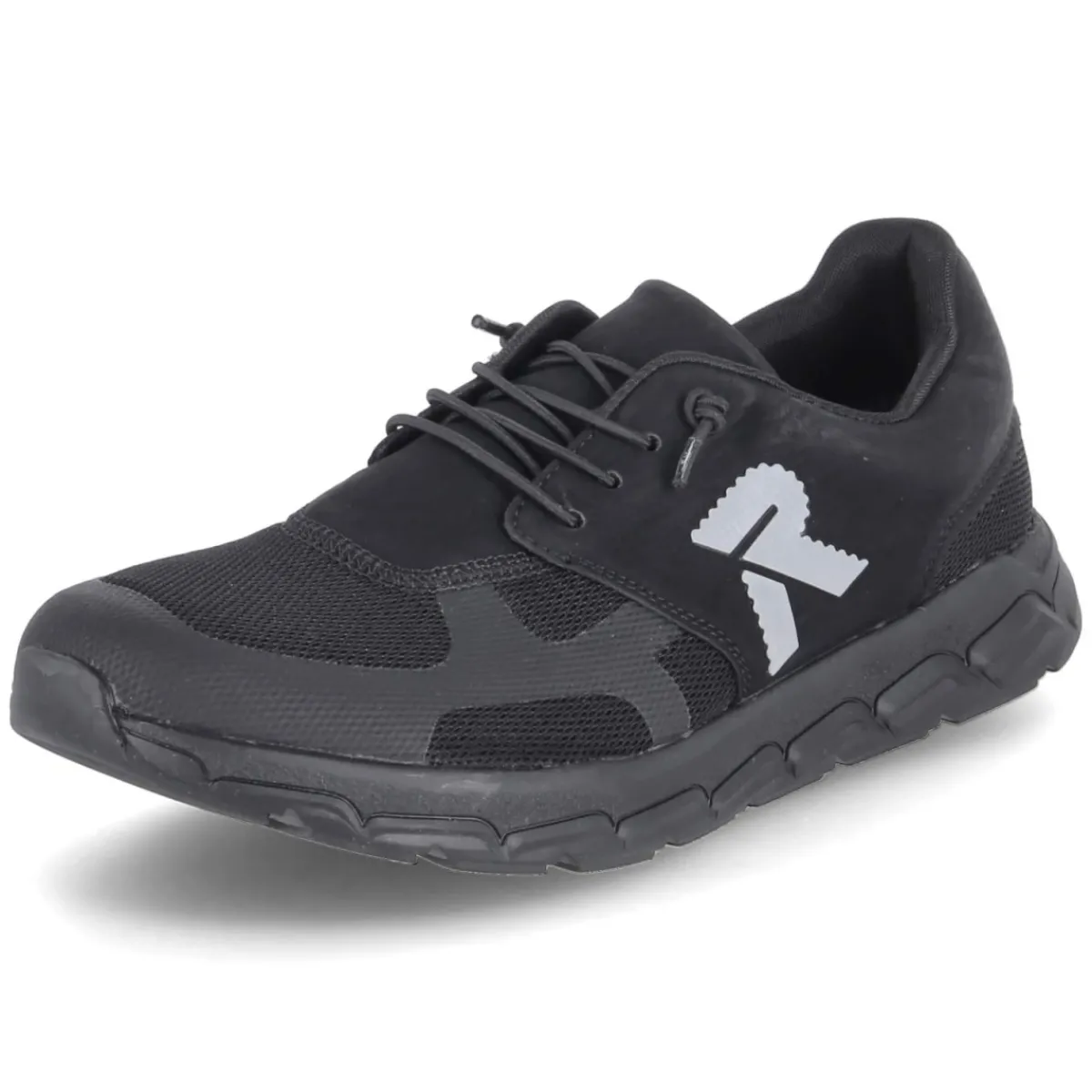 Der Low Sneaker von Rieker in Schwarz verbindet lässigen Look mit verlässlichem Tragekomfort. Der luftige Material-Mix aus Textil und Synthetik sorgt für angenehme Atmungsaktivität, während der rund geschnittene Vorderfuß natürlichen Platz bietet. Ein komfortables Wechselfußbett mit textiler Decksohle dämpft den Schritt und lässt sich bei Bedarf gegen eigene Einlagen tauschen. Praktisch erweist sich die bequeme Elastikschnürung, die das An- und Ausziehen beschleunigt und dennoch sicheren Halt bietet. Reflektierende Details inklusive gelabeltem Seitenreflektor erhöhen die Sichtbarkeit in der Dämmerung. Verstärkte Zehen- und Fersenpartien sowie ein gepolsterter Einstieg erhöhen die Langlebigkeit und Bequemlichkeit. Die flexible, rutschhemmende Laufsohle gibt Stabilität auf urbanen Wegen, das Modell fällt größengetreu aus. Modetipp: Mit Slim-Jeans, schwarzer Overshirt-Jacke und Ton-in-Ton-Sneakersocken gelingt ein cleaner City-Look.