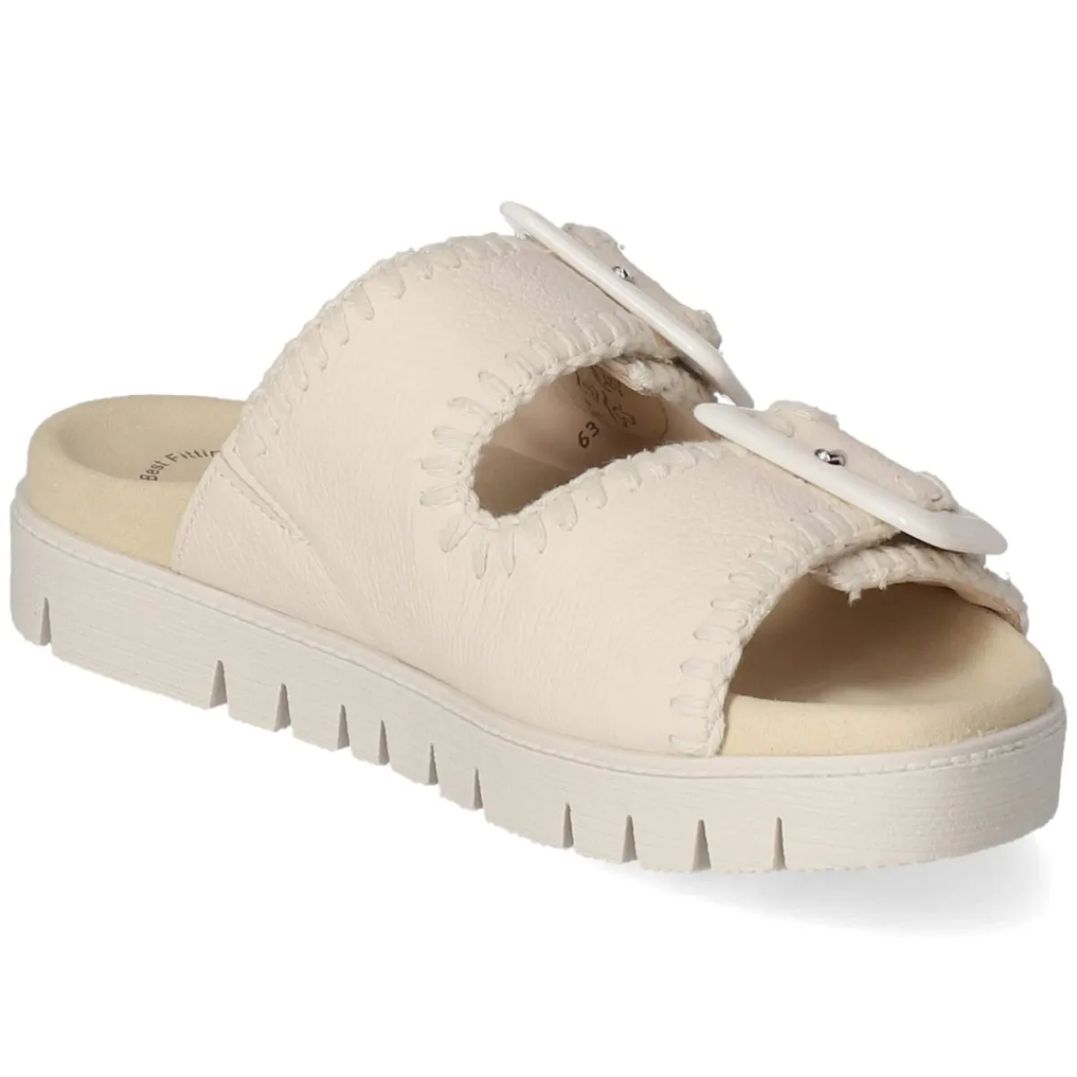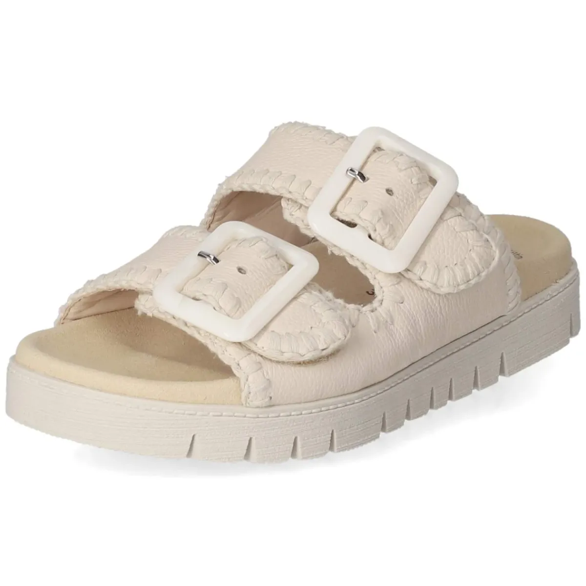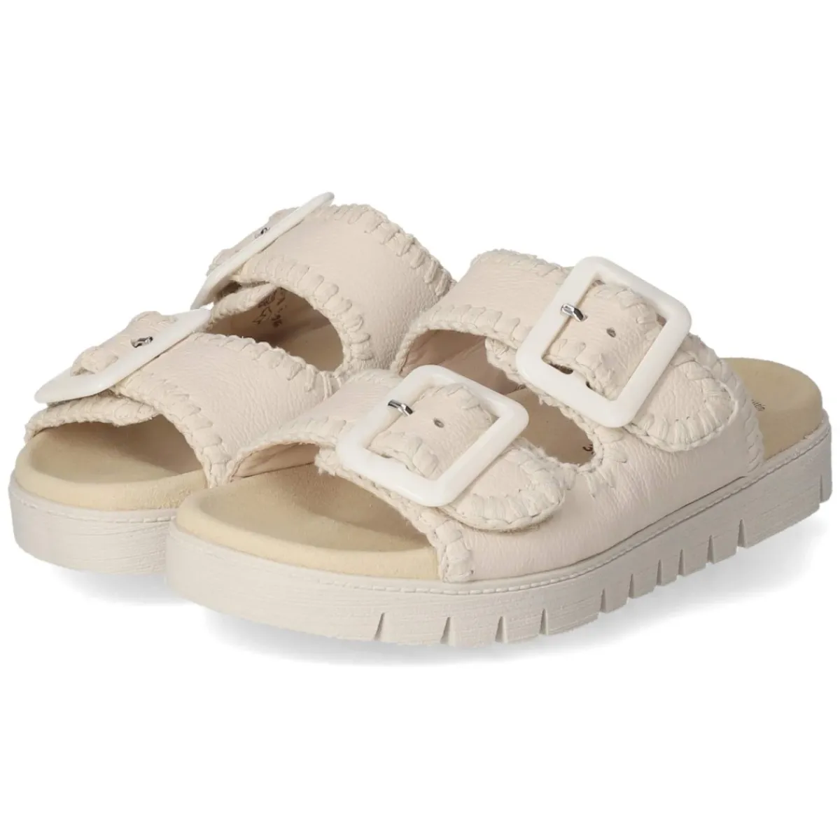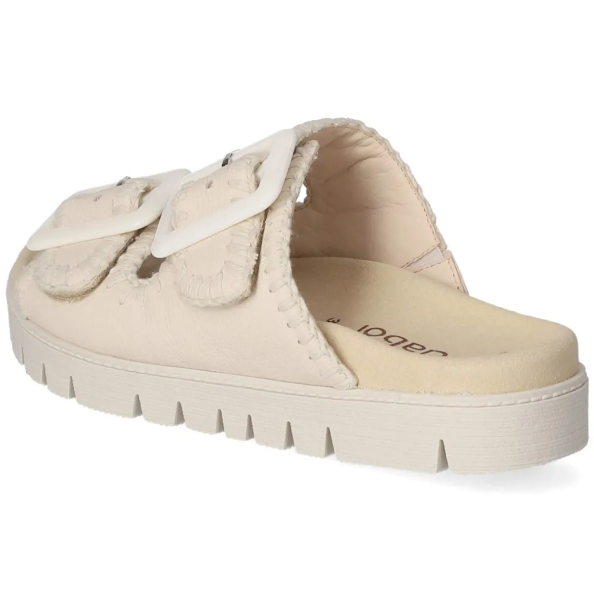 Zeitlose Lässigkeit trifft Komfort: Die Gabor Pantoletten in Beige überzeugen mit einem Obermaterial aus atmungsaktivem Echtleder und einer offenen Schuhspitze, die dem Fuß Luft lässt. Praktische Klettverschlüsse ermöglichen eine individuelle Anpassung, während die vorgeformte, textilbezogene Decksohle mit gepolstertem Tieffußbett den ganzen Tag über wohltuende Unterstützung bietet. Rustikale Ziernähte setzen dezente Akzente und runden den natürlichen Look harmonisch ab. Die flexible, rutschhemmende Laufsohle sorgt für sicheren Halt auf verschiedenen Untergründen. Das Modell fällt normal aus und eignet sich ideal für warme Tage, an denen leichte Eleganz gefragt ist. Modetipp: Zu Leinenhose und lockerem Blusentop entsteht ein entspanntes Sommeroutfit in Ton-in-Ton-Nuancen.