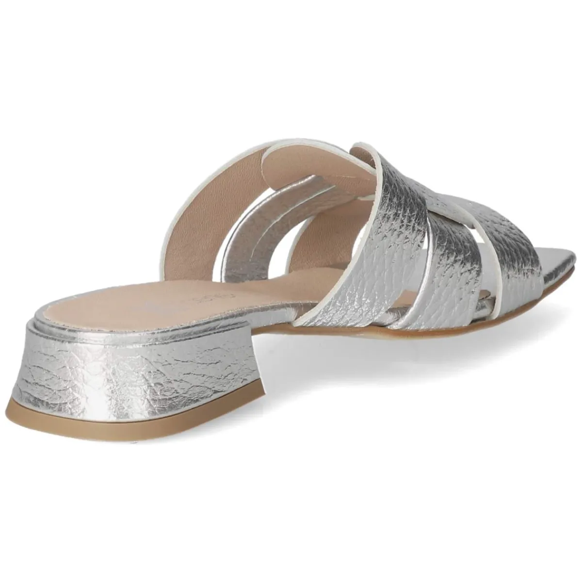 Kaerlek interpretiert die klassische Pantolette mit moderner Eleganz: Silbernes Glattleder mit elegant schimmernder Oberfläche trifft auf eine klare, offene Silhouette, die dem Fuß schmeichelt. Der unkomplizierte Einstieg ohne Verschluss macht den Schuh zum verlässlichen Begleiter im Alltag, während der 3 cm hohe Blockabsatz stabilen Halt bietet und die Silhouette dezent streckt. Die Lederdecksohle und das weich gepolsterte Fußbett sorgen für komfortables Tragegefühl selbst an langen Tagen. Eine flexible, rutschhemmende Laufsohle unterstützt einen sicheren Auftritt auf unterschiedlichen Untergründen. Dank normaler Passform fällt das Modell größengetreu aus. Modetipp: Für den Day-to-Night-Look mit Satin-Midirock und weißem Popeline-Hemd kombinieren, dazu silberne Creolen – die metallische Nuance der Pantoletten setzt den perfekten Glanzakzent.