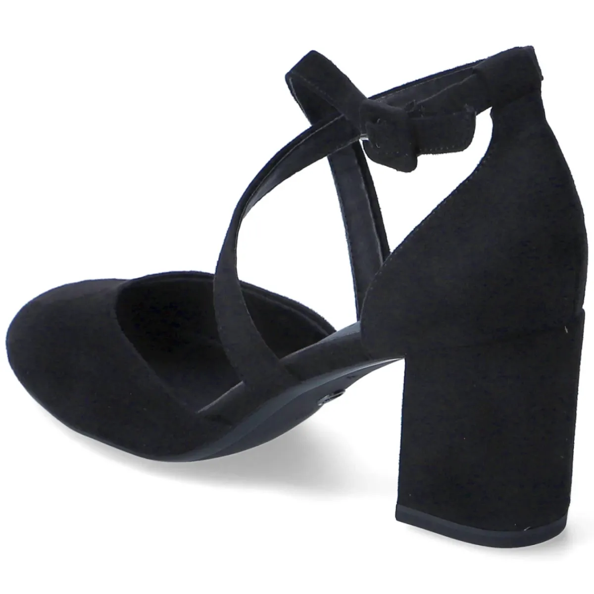 Zeitloser Chic trifft auf Komfort: Der schwarze Tamaris Pump zeigt sich mit samtiger Textiloberfläche und runder Schuhspitze als elegante Begleitung für Office und Event. Der 7 cm hohe Blockabsatz schenkt Höhe und bleibt dank breiter Auflage stabil, während die flexible, rutschhemmende Laufsohle souveränen Halt liefert. Ein Riemchen mit Schnalle und Elastikeinsatz sorgt für sicheren Sitz, ohne Druckstellen zu hinterlassen. Für langanhaltendes Wohlgefühl steht das weich gepolsterte Fußbett samt angenehm gepolsterter Decksohle. Das Modell fällt größengetreu aus und besteht aus veganen Materialien, ideal für einen bewussten Look ohne Kompromisse bei Stil und Tragekomfort. Modetipp: Zum kleinen Schwarzen oder zur Zigarettenhose mit seidigem Top kombinieren, dazu eine dezente Clutch und ein Hauch roter Lippenstift für einen souverän femininen Auftritt.