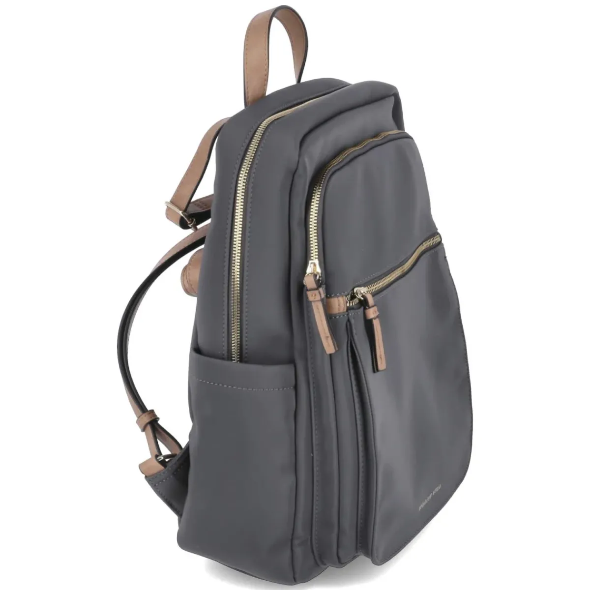 Dieser graue Damenrucksack verbindet klare Linien mit praktischer Organisation. Das kompakte Format von ca. 37 x 28 x 13 cm bringt etwa 7 Liter Volumen unter, ohne sperrig zu wirken. Goldfarbene Metallelemente setzen elegante Akzente, während verstellbare Tragegurte bis ca. 90 cm Länge und ein stabiler Henkel vielfältige Tragemöglichkeiten eröffnen. Ein verstärkter Boden sorgt für Form und Stand. Außen erleichtern zwei Fronttaschen den schnellen Zugriff, das diskrete Rückenfach bewahrt Wertsachen nah am Körper. Im Reißverschlusshauptfach strukturieren ein gepolstertes Fach in Laptopgröße und ein zusätzliches Reißverschlussfach den Inhalt. So gelingen Büroalltag, Citytour und After-Work nahtlos. Modetipp: Zu monochromen Graunuancen und weißem Hemd mit lockerem Oversize-Blazer kombinieren, dazu glatte Chelsea-Boots – der edle Minimalismus des Rucksacks kommt perfekt zur Geltung.
