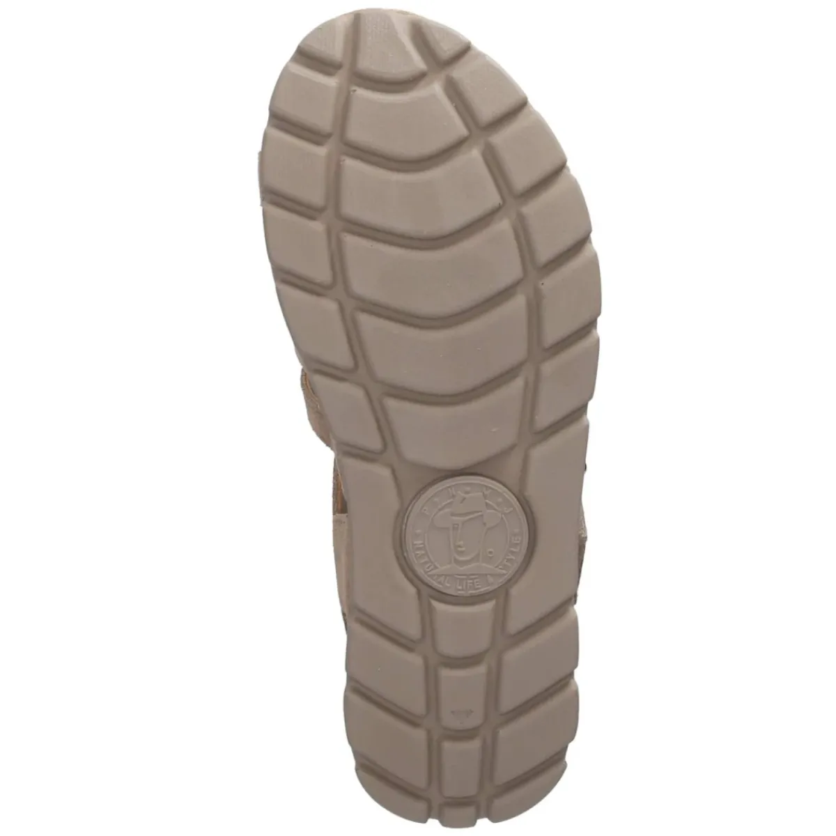 SASHA von Panama Jack vereint sommerliche Leichtigkeit mit langlebiger Wertigkeit. Das Obermaterial aus weichem Rauleder in Taupe schmiegt sich angenehm an, während die lederne Decksohle ein natürliches Fußklima unterstützt. Der markante T-Steg interpretiert den Römerstil modern und sorgt zusammen mit dem verstellbaren Klettverschluss für sicheren Halt und eine passgenaue Weite. Ein gepolstertes Fußbett entlastet bei jedem Schritt, die flexible, rutschhemmende Profilsohle bietet Grip auf Stadtpflaster wie Strandpromenade. Dezente Markendetails vollenden den zeitlosen Look, der zu vielseitigen Outfits harmoniert. Modetipp: Mit einem luftigen Leinenkleid in Creme, einer Basttasche und feinem Goldschmuck entsteht ein eleganter Sommerauftritt, der Material und Farbe der Sandale effektvoll aufgreift.