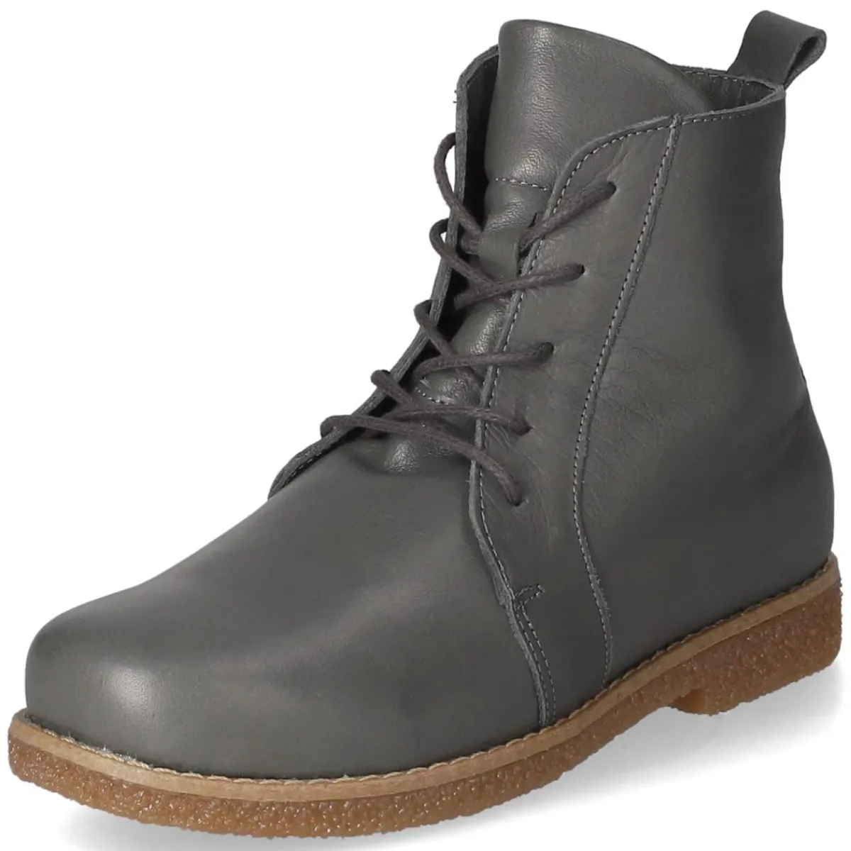 Die grauen Schnürstiefeletten von Andrea Conti verbinden zeitlosen Look mit verlässlichem Tragekomfort. Das hochwertige Glattleder zeigt eine feine Struktur, die dank langlebigem Echtleder ihre Form bewahrt, während angenehmes Lederfutter und eine Decksohle aus Leder den Fuß umschmeicheln. Eine runde Spitze, die flexible, rutschfeste Laufsohle und die verstärkte Ferse sorgen für alltagstaugliche Stabilität. Per Schnürung individuell angepasst und mit zusätzlichem Reißverschluss bequem an- und auszuziehen; eine praktische Anziehlasche rundet das Design ab. Das Wechselfußbett erlaubt eigene Einlagen, die Passform fällt normal aus. Modetipp: Zu Straight-Leg-Jeans, meliertem Rollkragenpullover und einem grauen Wollmantel entsteht ein cleaner City-Look.
