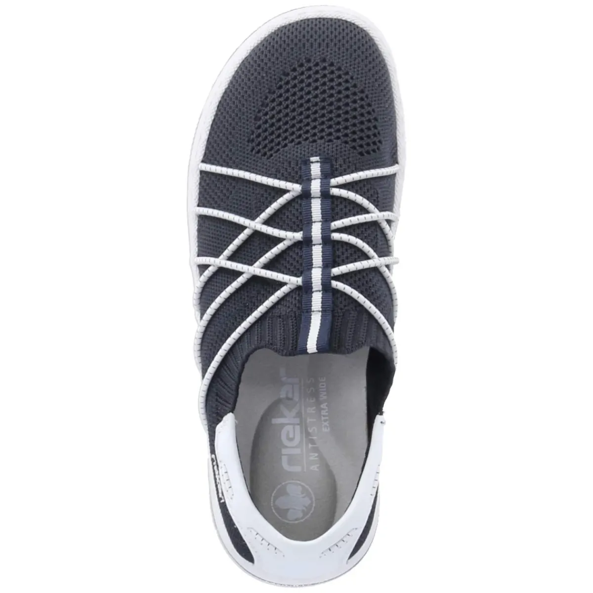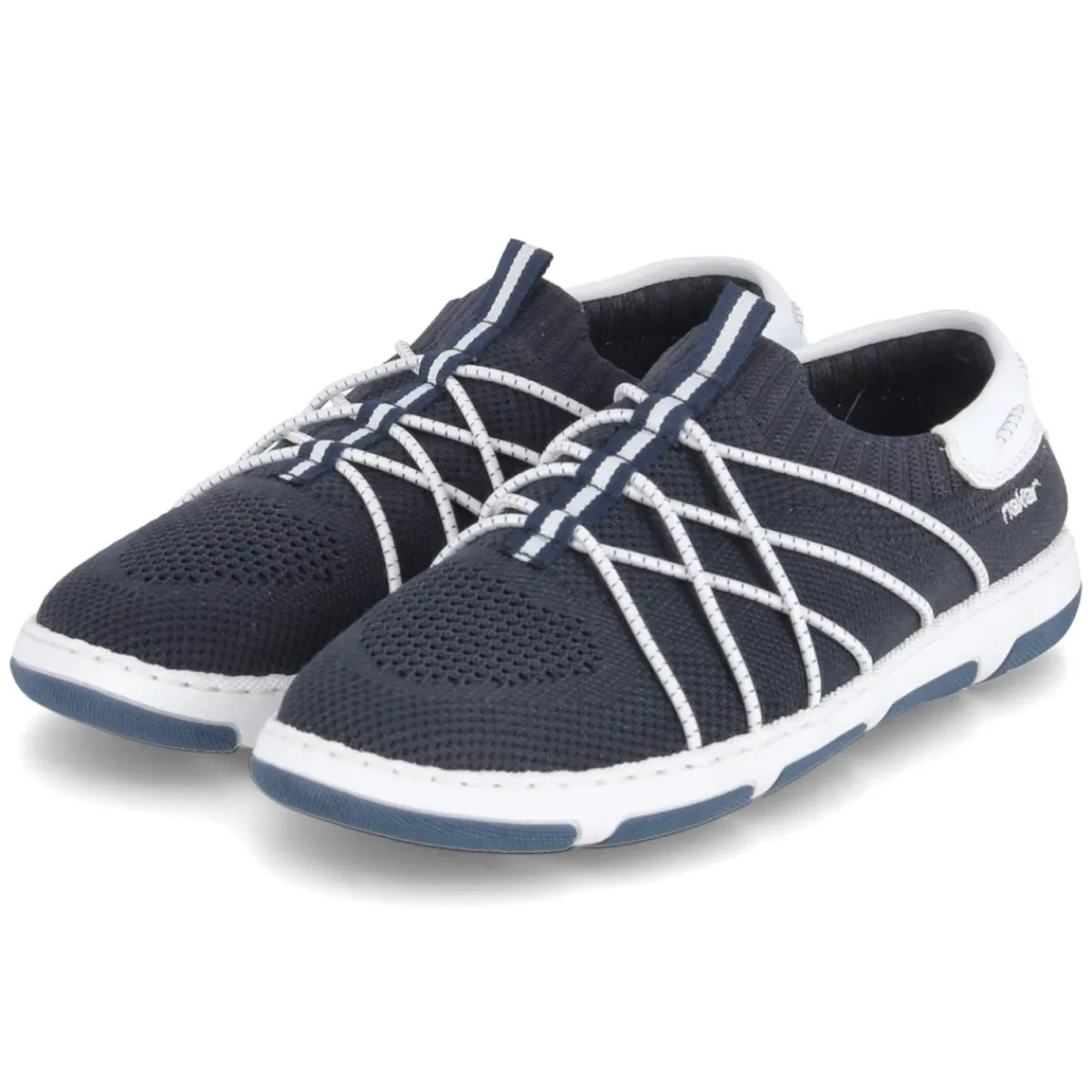 Der Rieker Slipper für Damen vereint sportliche Optik und modernen Material-Mix aus Textil und Synthetik in einem frischen Blauton. Elastikbänder über dem Spann und der stretchige Einstieg bieten bequemen Halt, während die verstärkte Ferse und die Anziehlasche das Hineinschlüpfen erleichtern. Das gepolsterte Wechselfußbett mit textiler Decksohle umhüllt den Fuß angenehm und lässt sich bei Bedarf gegen eigene Einlagen tauschen. Eine flexible, rutschhemmende Laufsohle sorgt für sicheren Grip im Alltag, die runde Schuhspitze schafft angenehme Zehenfreiheit. Dank schmaler Passform ideal für schlanke Füße und lange Tage auf den Beinen. Modetipp: Ton-in-Ton zur locker geschnittenen Chino und einem maritimen Bretonshirt tragen; filigraner Schmuck unterstreicht die moderne, sportlich-feminine Note.