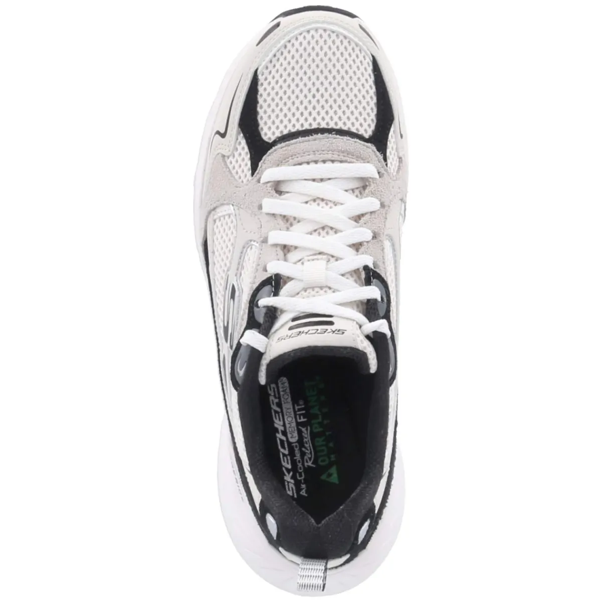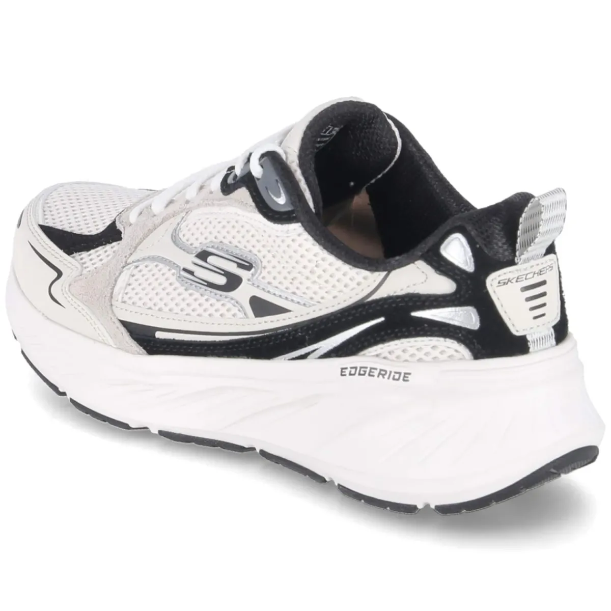 Der Skechers Sneaker EDGERIDE-COOL FUSION setzt auf eine moderne Optik in klarem Weiß, akzentuiert durch schwarze und silberne Highlights. Obermaterial aus Leder und Synthetik trifft auf atmungsaktive Mesh-Elemente, die gemeinsam mit gepolstertem Einstieg und Anziehlasche ein angenehmes Tragegefühl sichern. Die beste Memory-Foam-Fußbettung schmiegt sich an, die textile Decksohle rundet den Komfort ab. Runde Spitze, stabiler verstärkter Fersen- und Zehenbereich sowie der klassische Schnürverschluss sorgen für Alltagstauglichkeit. Das Modell fällt normal aus und richtet sich an Damen. Positiv hervorzuheben: Teile des Sneakers bestehen aus recycelten Materialien – ein umweltfreundlich gedachter, nachhaltig inspirierter Ansatz. Modetipp: Zu weit geschnittener Anzughose und Cropped-Blazer entsteht ein cleaner Athleisure-Look mit elegantem Twist.
