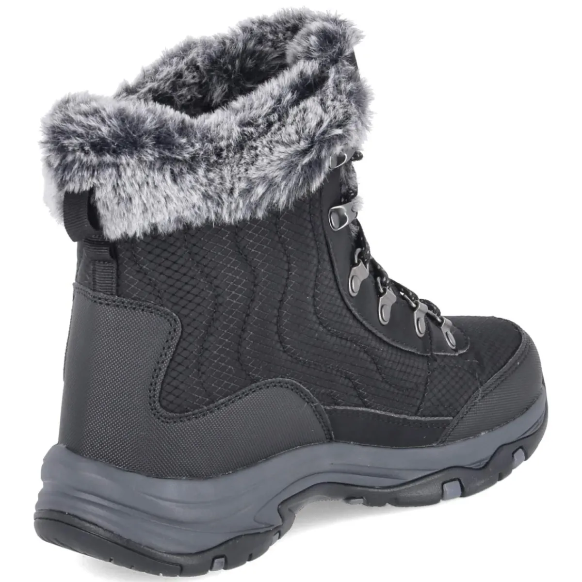 Der Snowboot TREGO-STORMIE von Skechers vereint funktionale Winter-Performance mit moderner Optik. Das Obermaterial aus Textil und Synthetik ist wasserabweisend, die Konstruktion zugleich wasserfest, während atmungsaktive Zonen das Klima regulieren. Warmfutter umschließt den Fuß, die beste Memory-Foam-Fußbettung entlastet bei jedem Schritt. Ein abgesteppter Schaft, verstärkter Fußrahmen und die rutschfeste Profilsohle geben Halt auf glatten Wegen. Die Schaftkrempe aus Kunstfell setzt einen weichen Akzent, die runde Spitze und die Schnürung sorgen für komfortablen Sitz; eine Anziehlasche erleichtert den Einstieg. In klassischem Schwarz und größengetreu geschnitten ist der Boot ideal für Damen im Alltag und Outdoor. Modetipp: Mit Steppjacke, Thermo-Leggings und grober Strickmütze entsteht ein cleaner City-Winterlook.